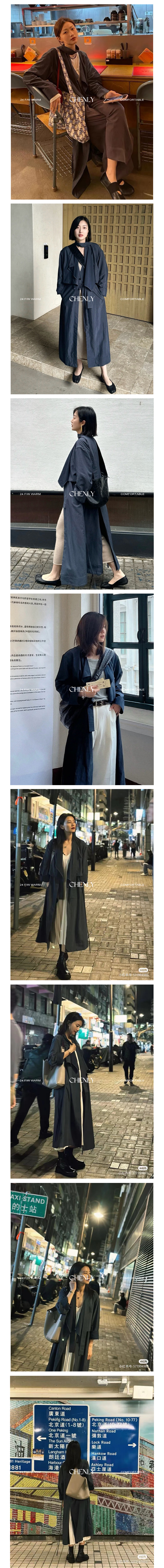 尘衣|圆圆同款气质飘带领长款风衣外套