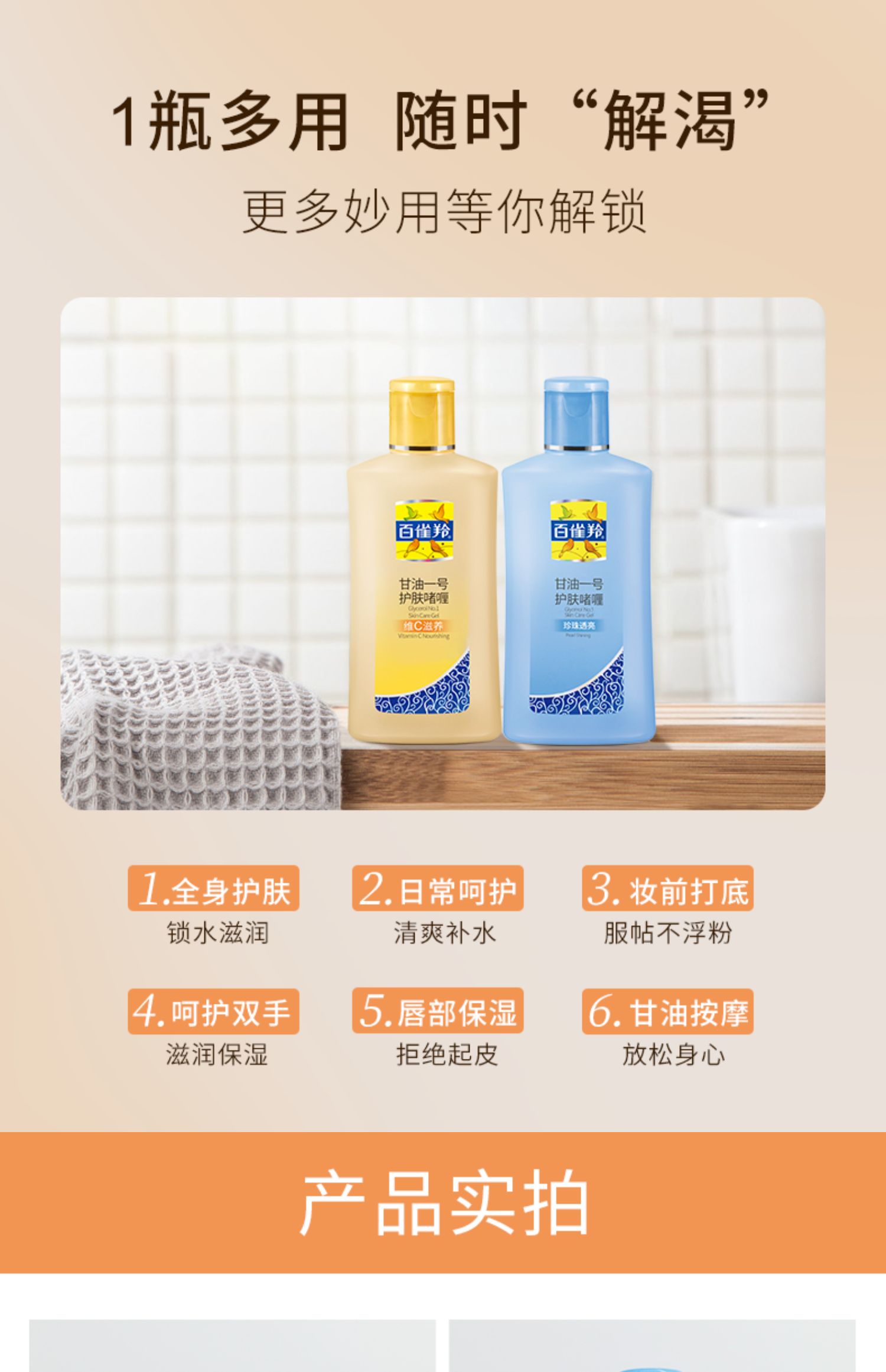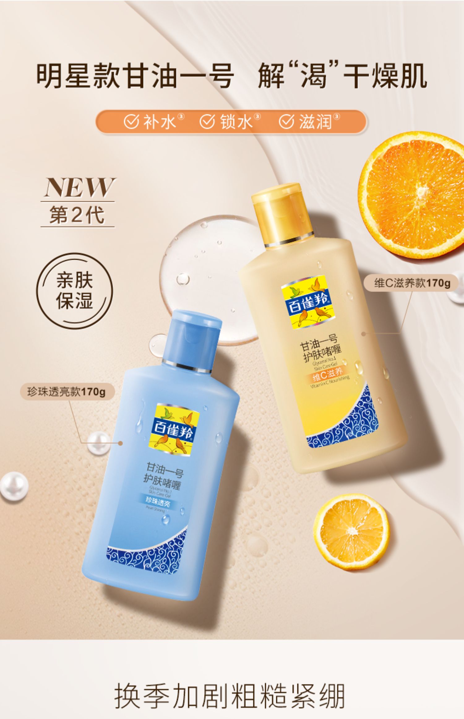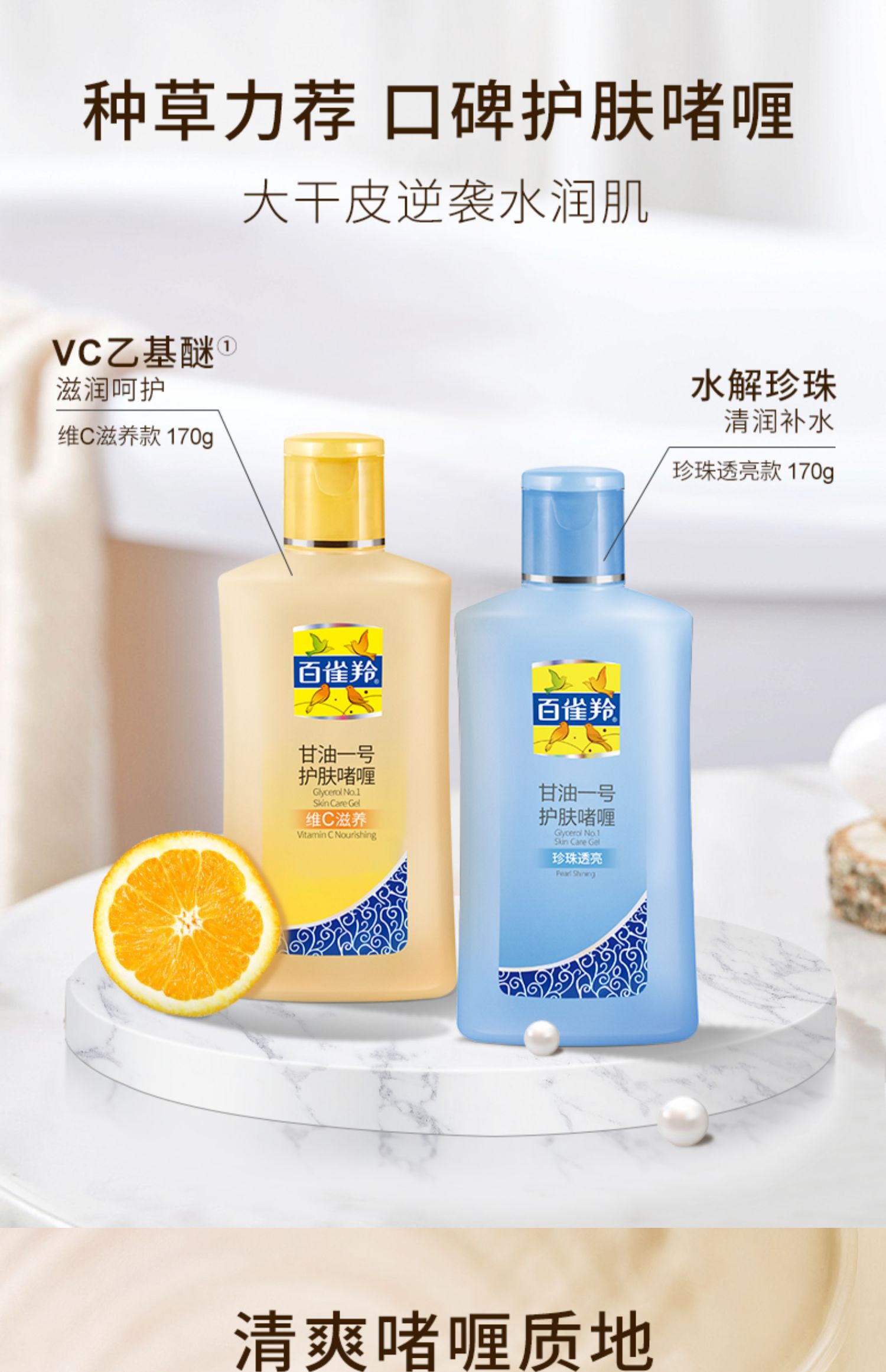 百雀羚经典甘油护肤啫喱清爽保湿维c滋养细腻肌肤清新珍珠透亮
