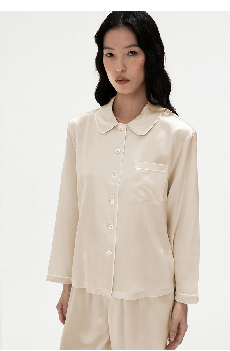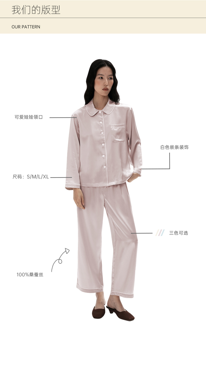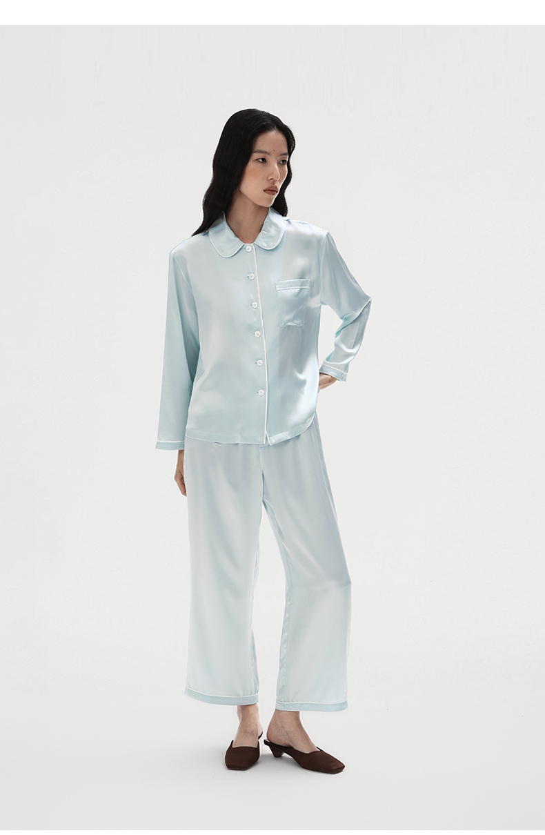 桑罗小圆领娃娃领真丝睡衣套装100%桑蚕丝长袖家居服可外穿03A62865