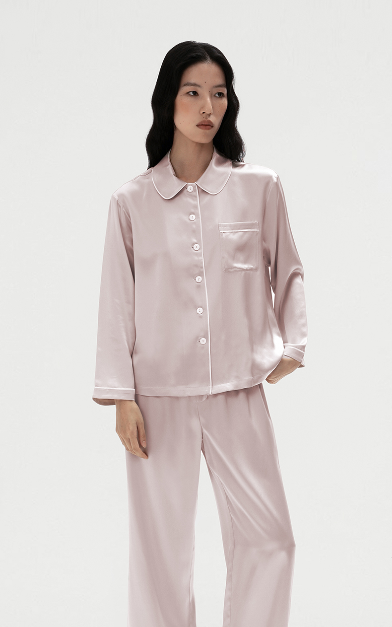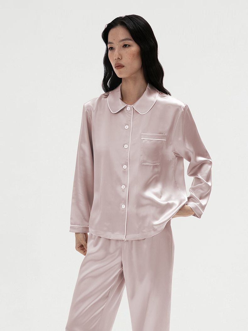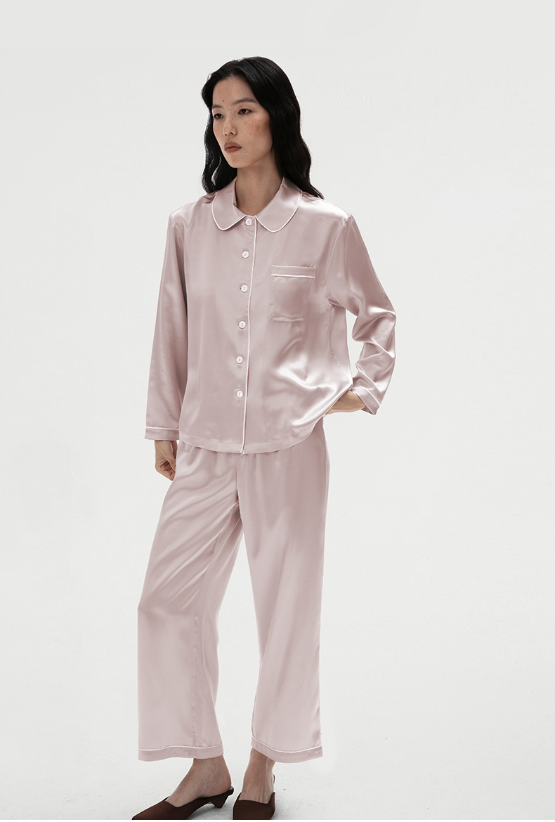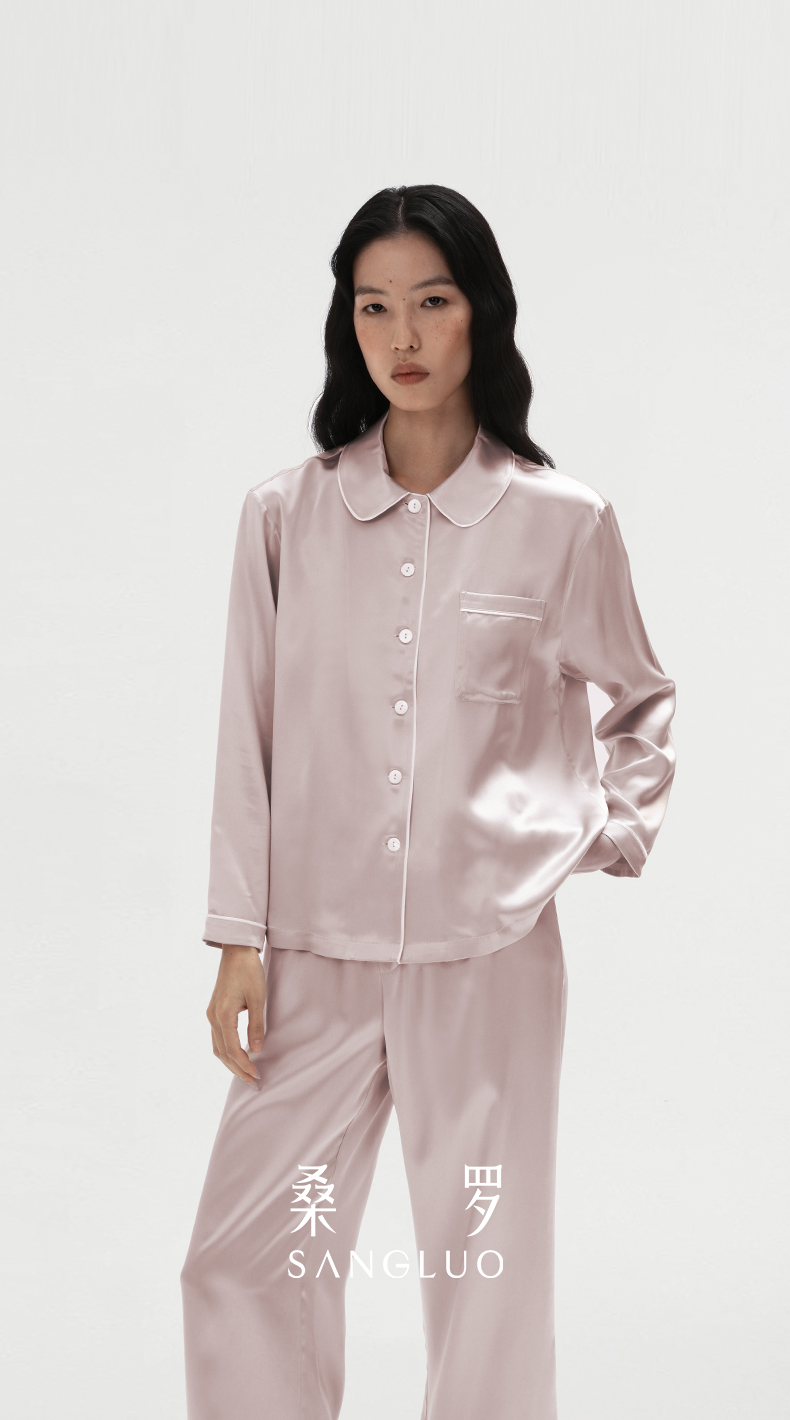 桑罗小圆领娃娃领真丝睡衣套装100%桑蚕丝长袖家居服可外穿03A62865