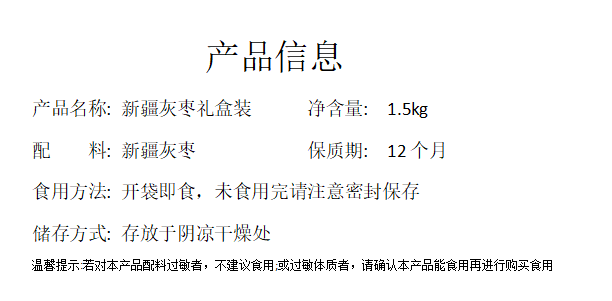 兵团红新疆灰枣礼盒1.5kg(500g*3)