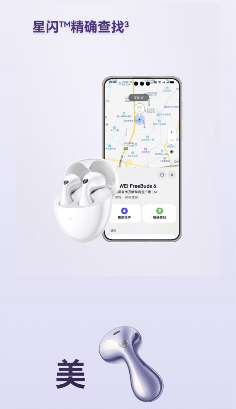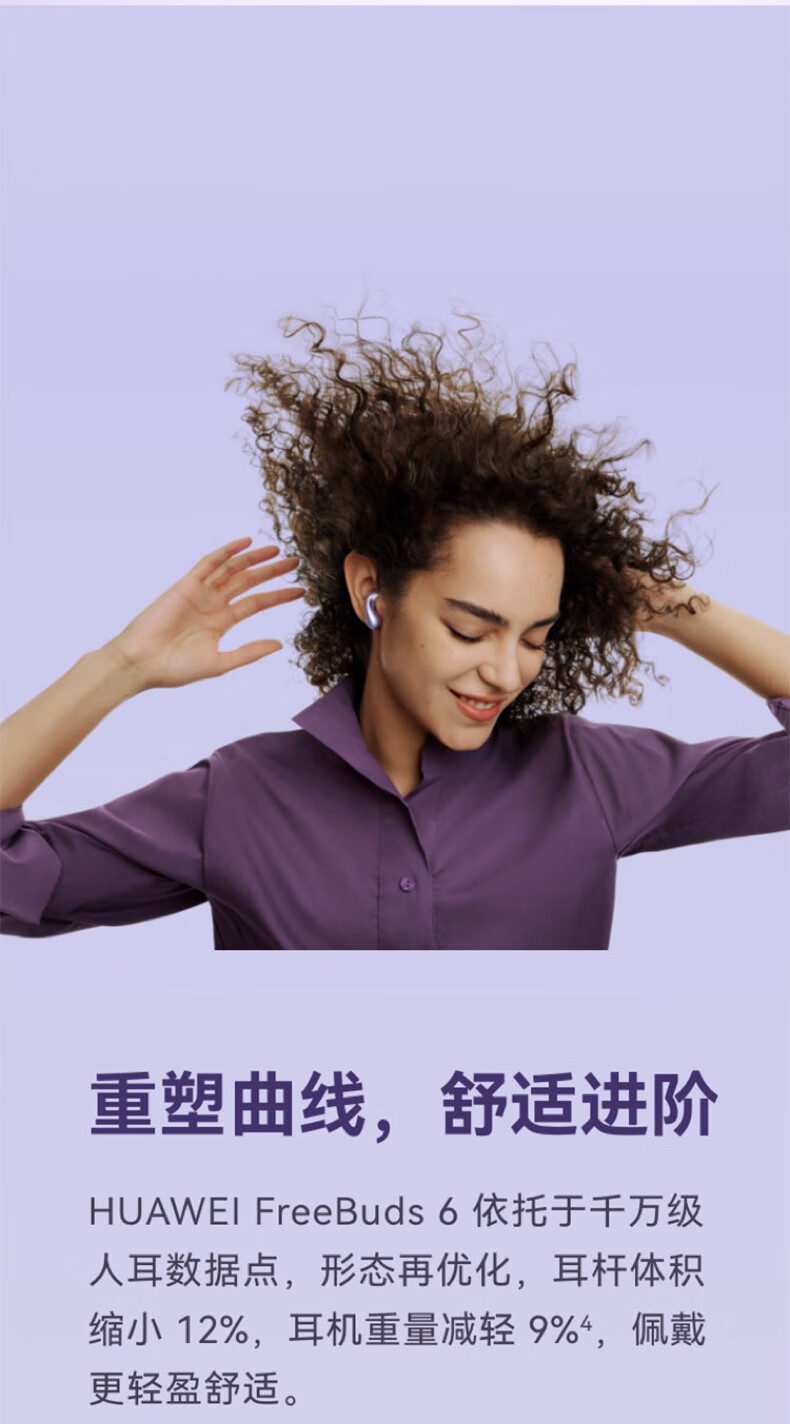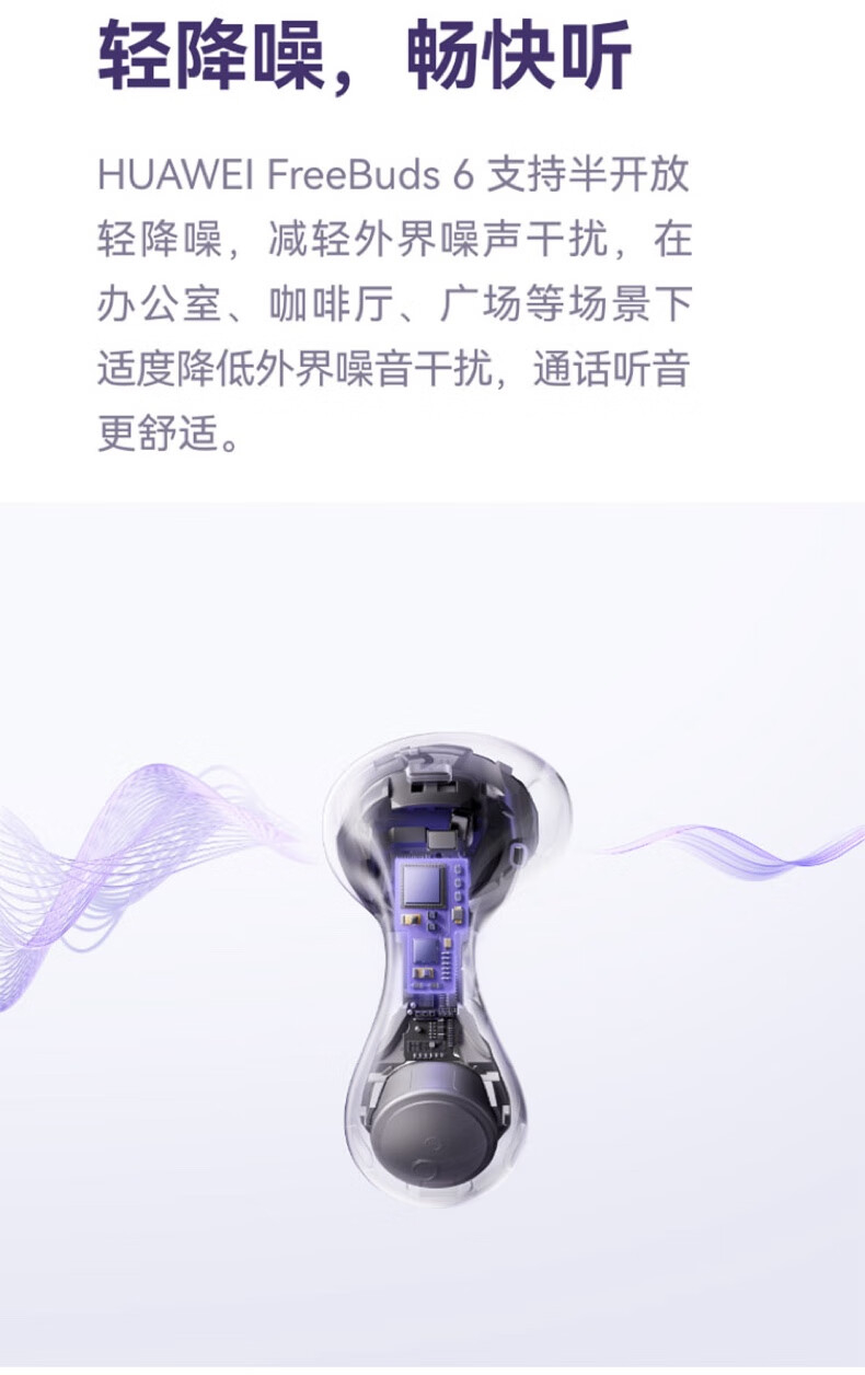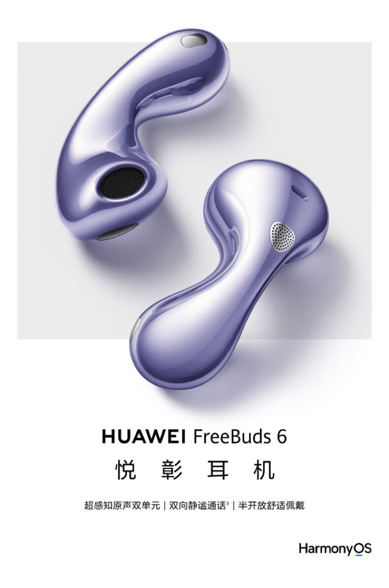 华为(HUAWEI)FreeBuds 6 悦彰耳机 无线蓝牙耳机 超感知原生双单元 双向静谧通话 半开放式水滴耳机