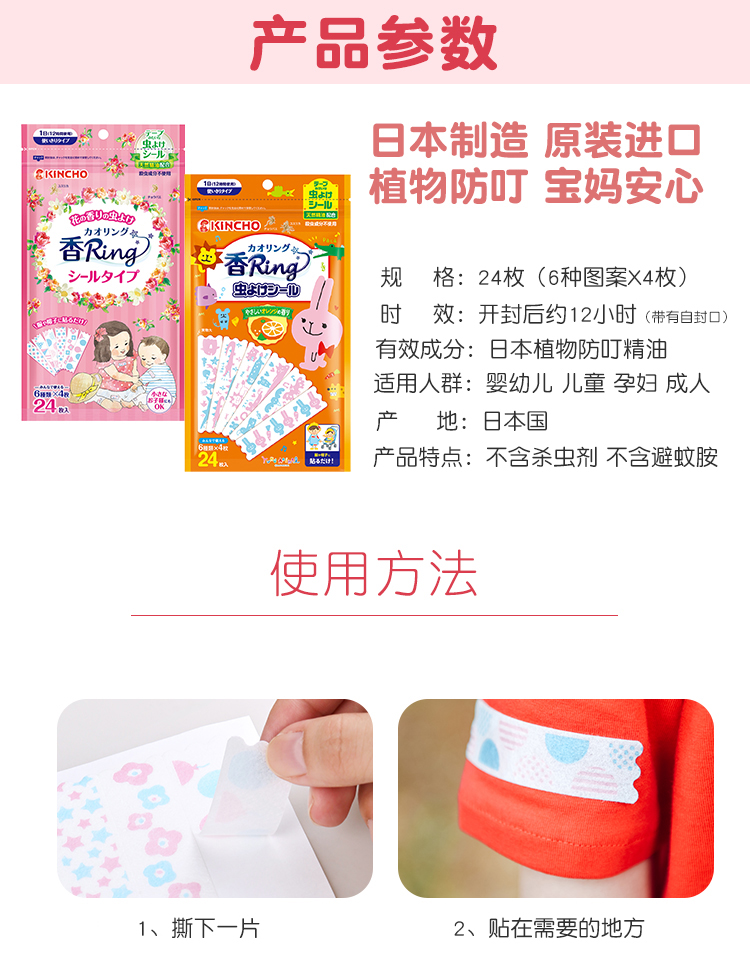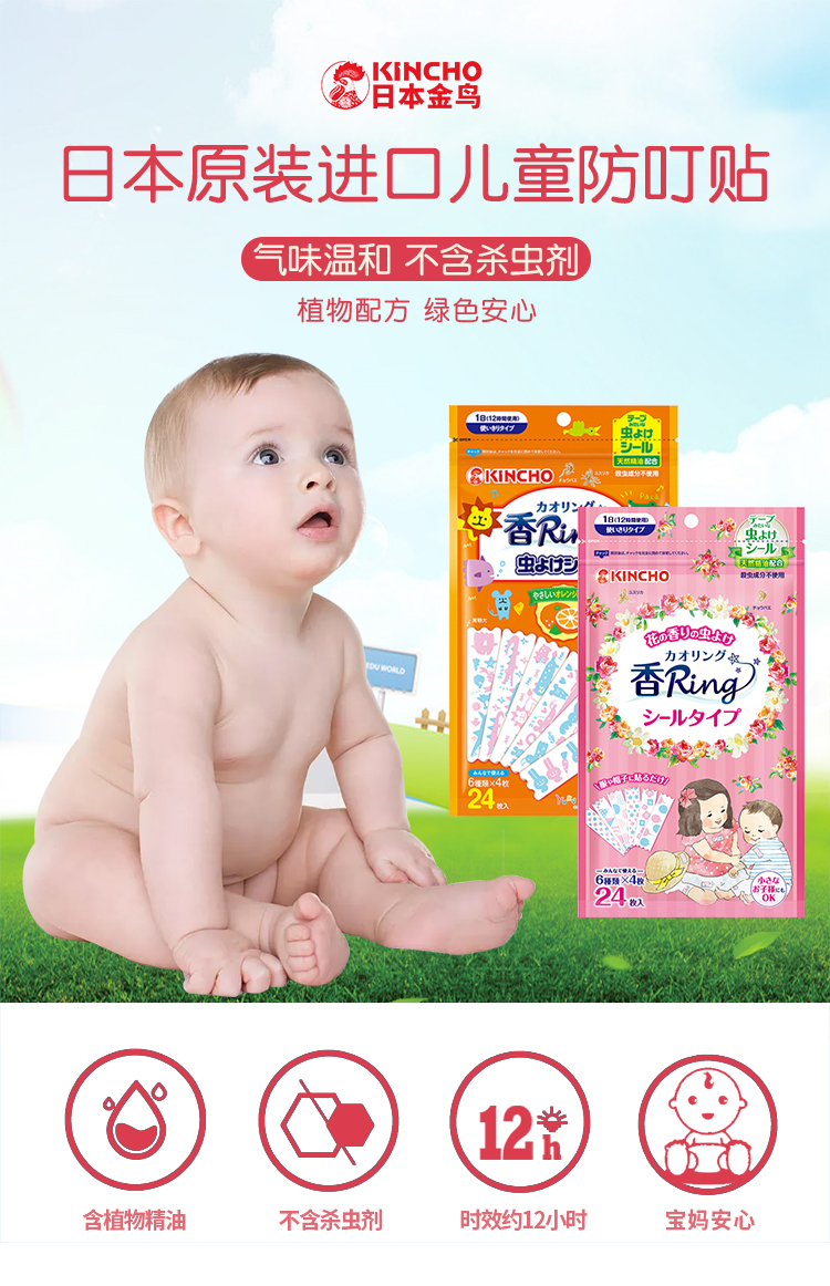 Kincho日本金鸟防蚊贴随身驱蚊神器花草香24枚/袋