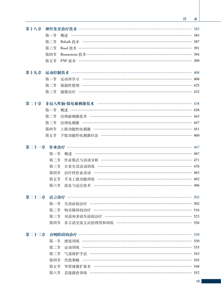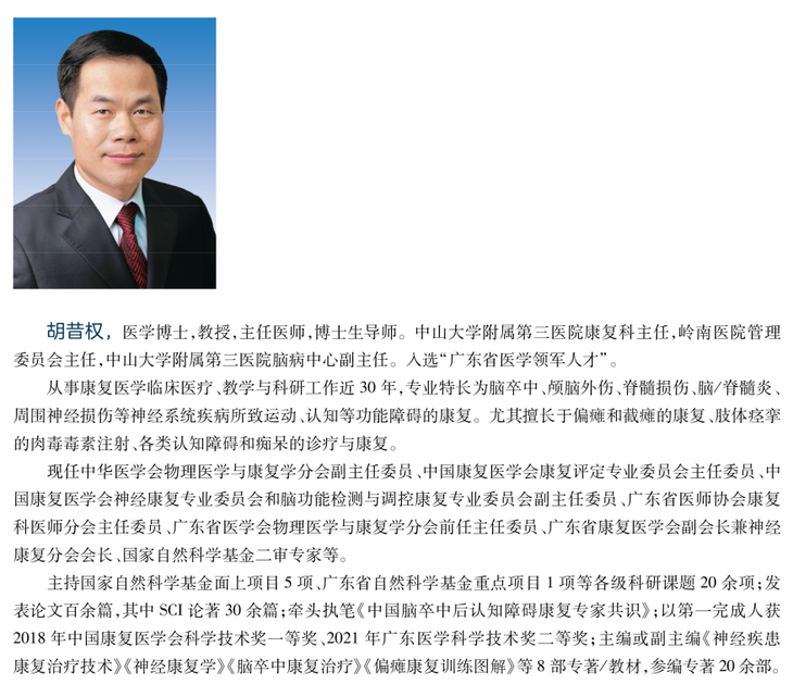 三是在第三篇瘫痪相关康复技术与方法中,将第2版中的瘫痪物理因子治疗调整为非侵入性脑-肢磁电技术,增加了近年来发展比较快的经颅磁刺激、经颅电刺激、肢体功能性电刺激以及智能康复技术。