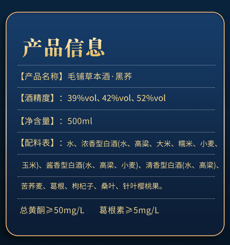 【高碳版】500ml毛铺草本酒·黑荞(39度/42度/52度)