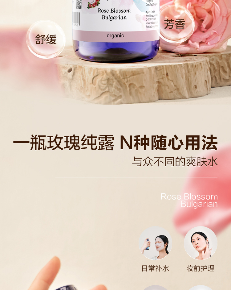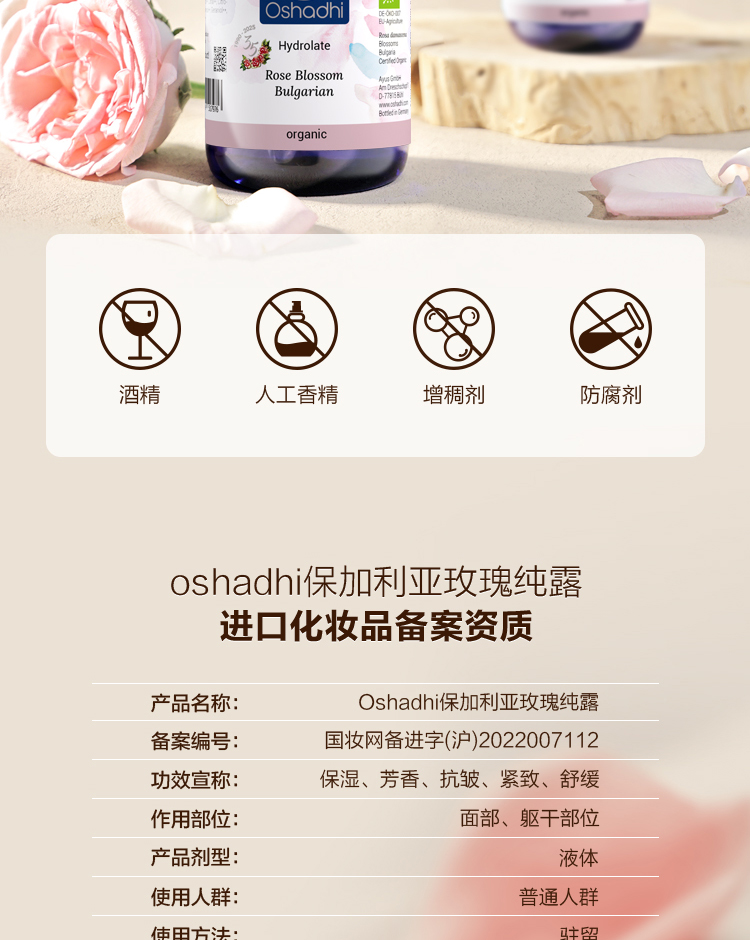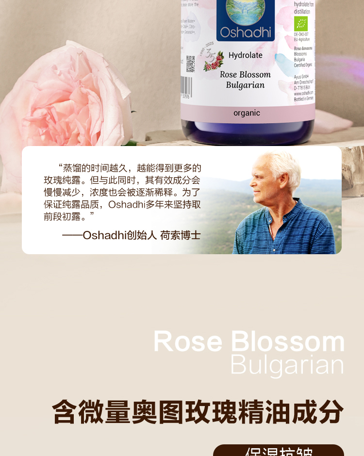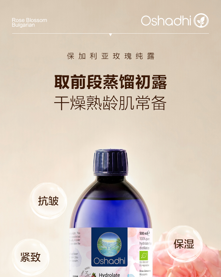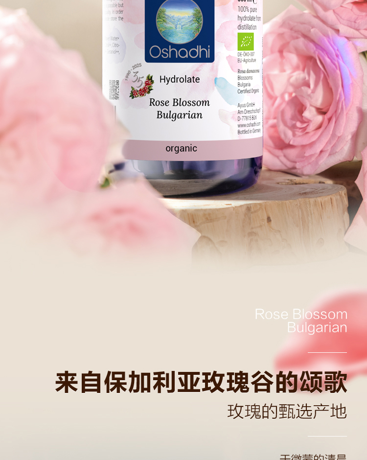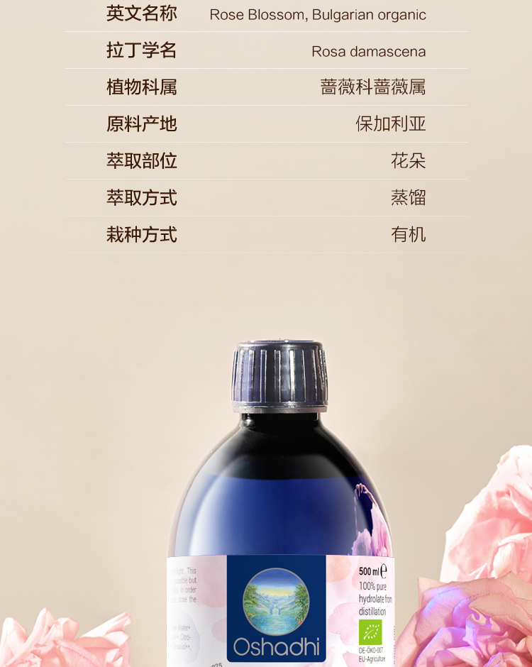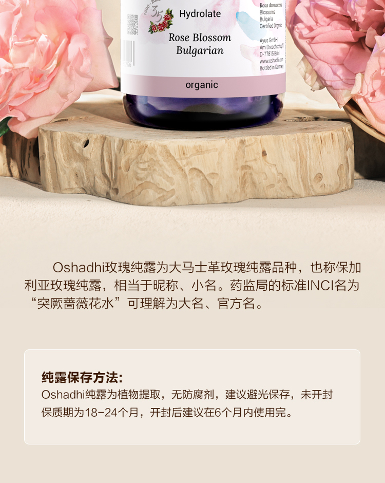 Oshadhi德国O家保加利亚玫瑰纯露保湿补水 湿敷 花水爽肤水