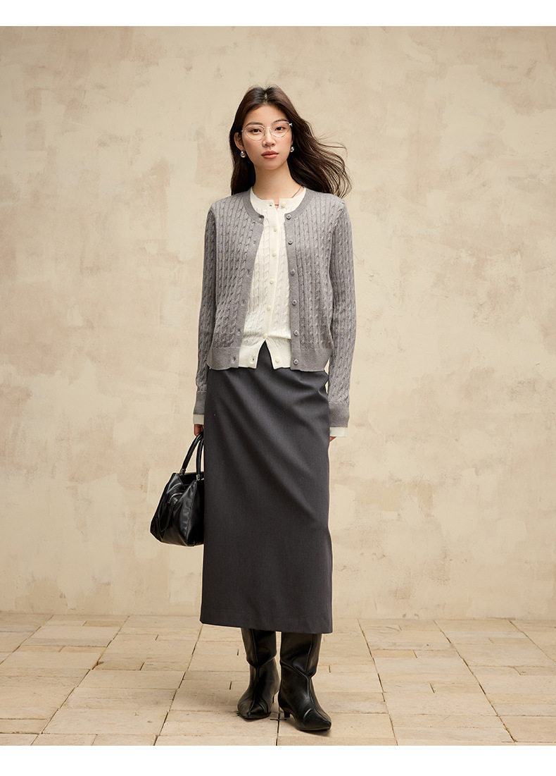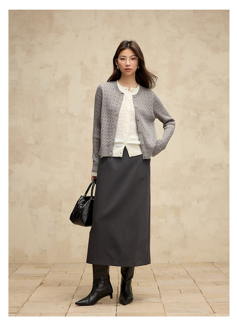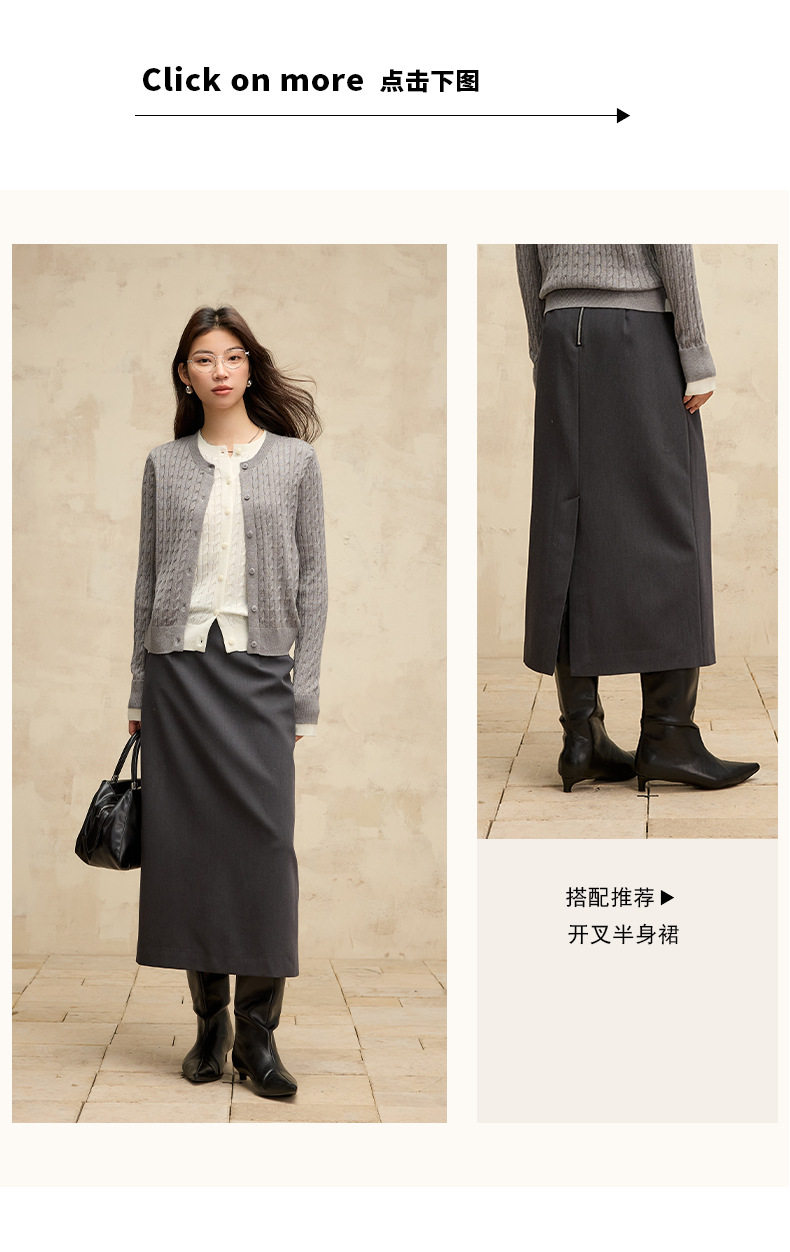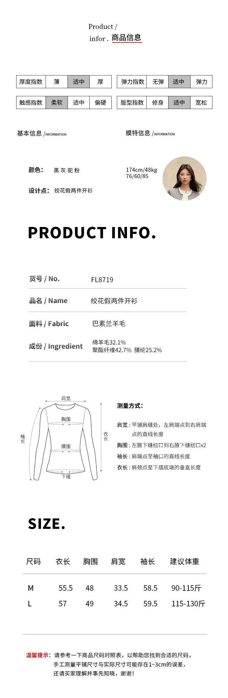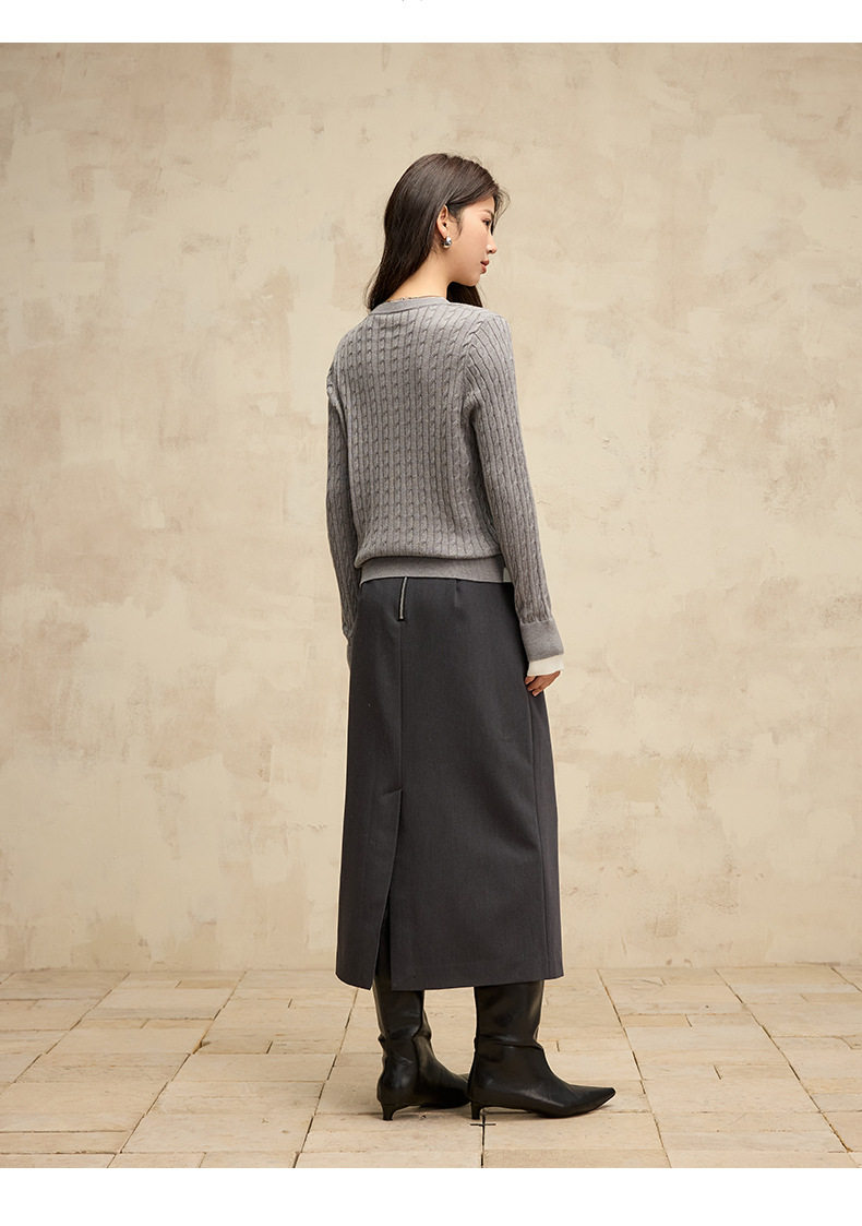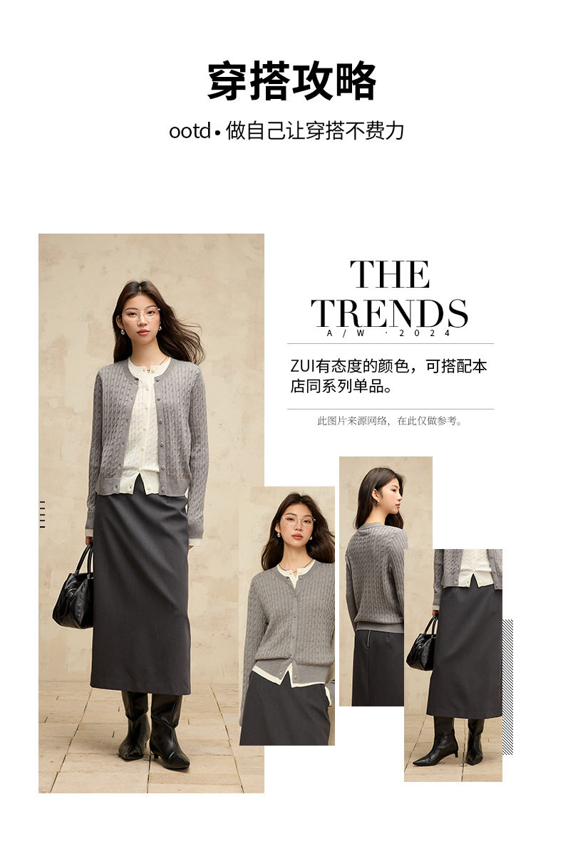 高级感假两件撞色圆领羊毛外套女24秋季新款时尚宽松麻花针织开衫
