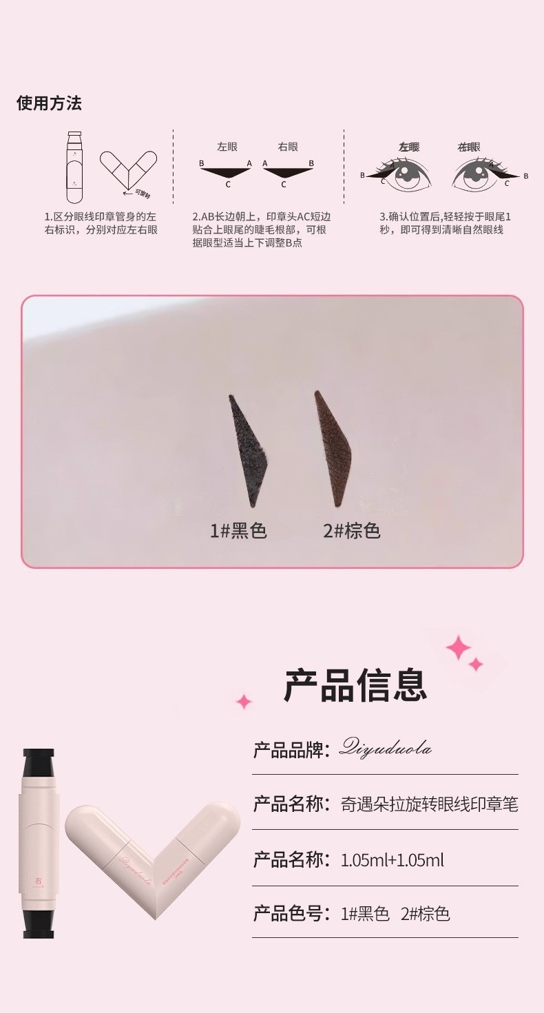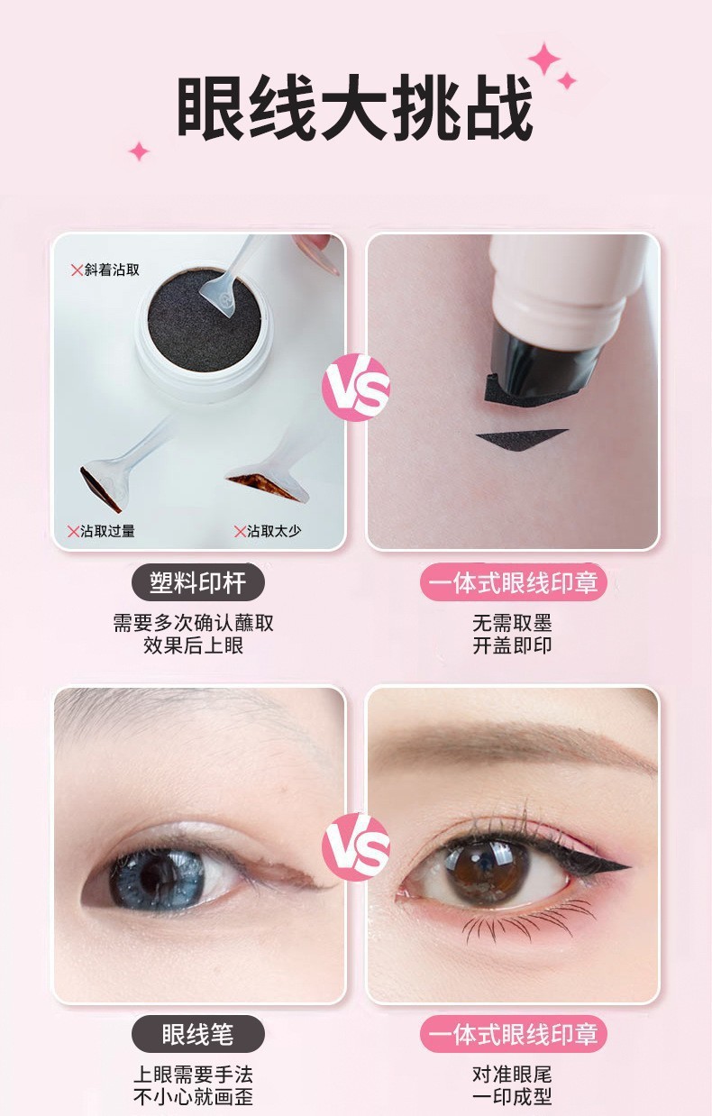 【手残党的福音❗旋转眼线印章笔】新手精巧眼线造型,轻松印出自然“对称眼线” 无需反复调整角度,左右对称眼线一按成型,一体式转庄眼线印章笔眼线L