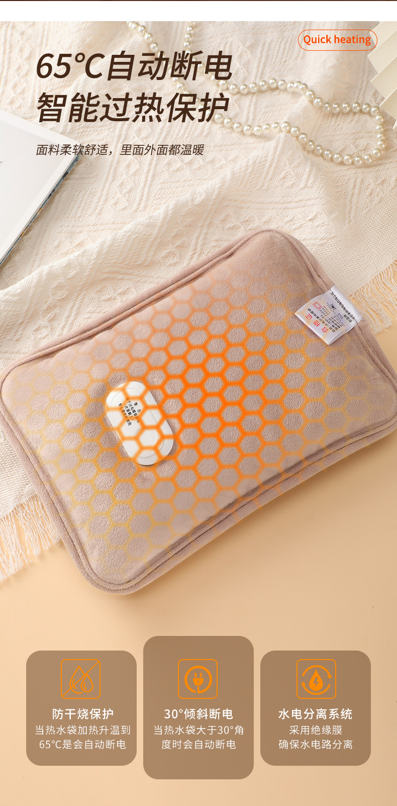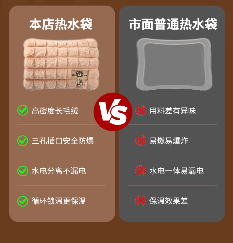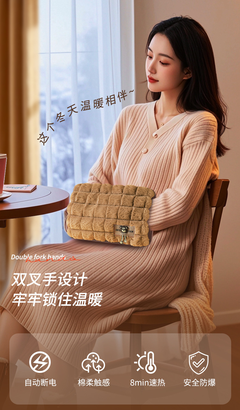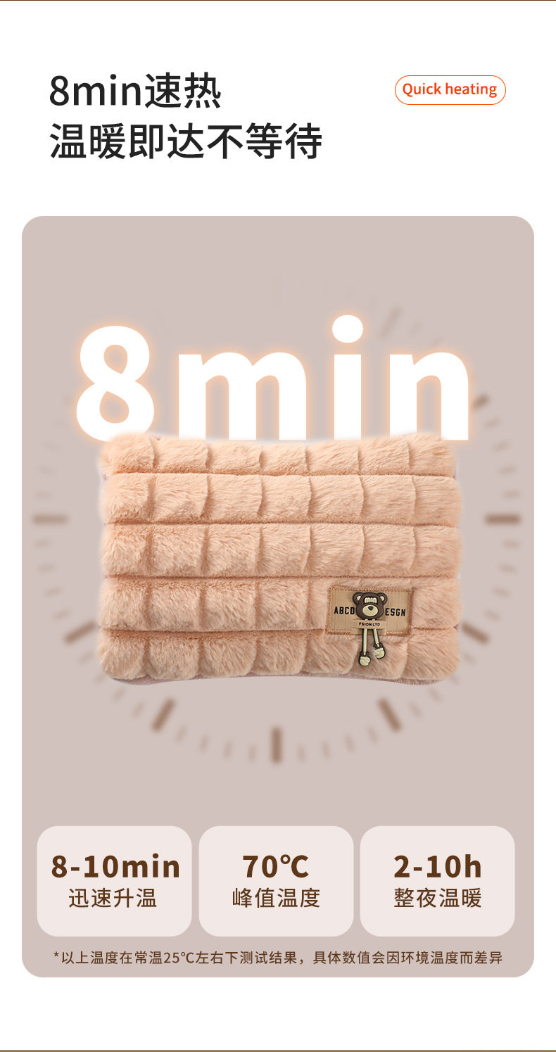 【超暖❗️国标充电热水袋】安全智能温控 65°C自动断电 整夜温暖 暖意延续守护!防爆自动断电暖水袋毛绒卡通双插手暖宝宝