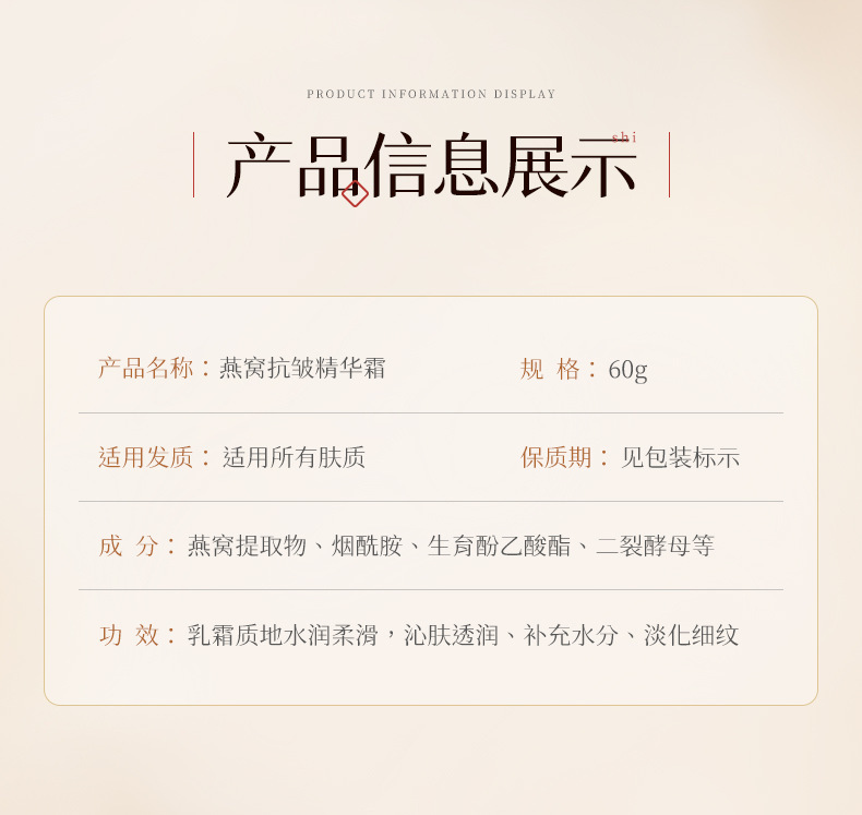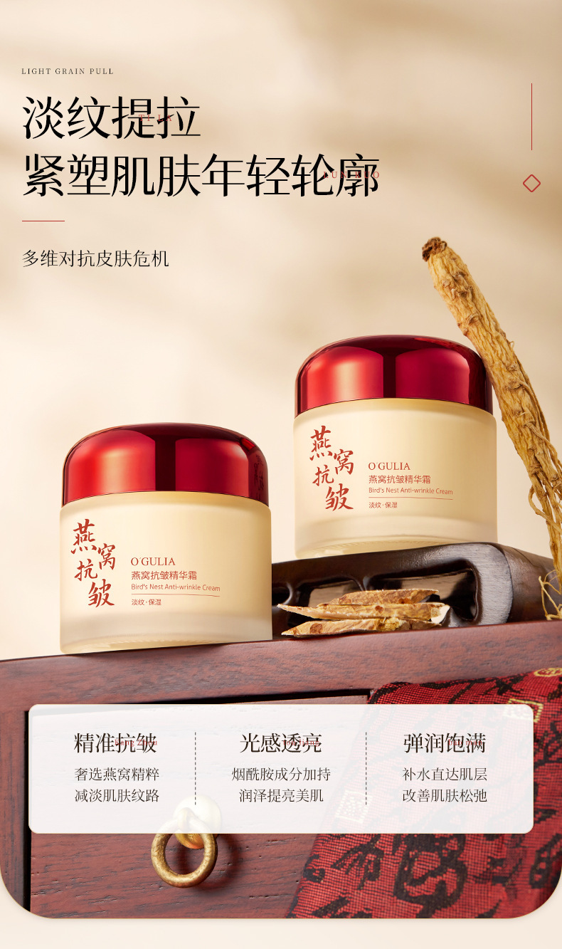 【奢养水光肌!燕窝抗皱精华霜】舒缓抗皱!全脸紧致上扬,补水保湿滋润紧致面霜