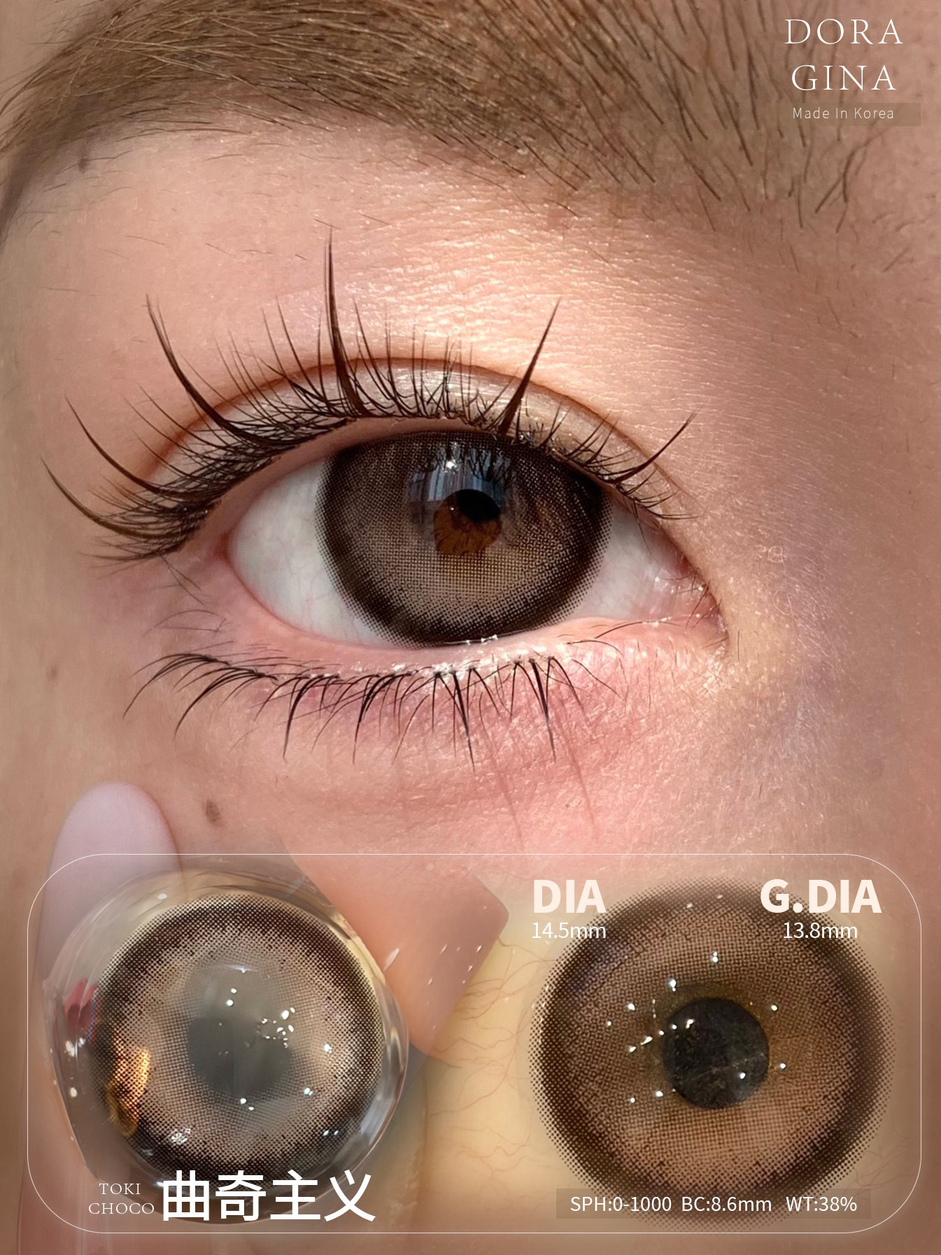 标注直径:14.5mm着色直径:13.8mm含水量:38%佩戴期限:年型 可配:0-800度(无525/575)工厂: 韩产icodi含硅水凝胶