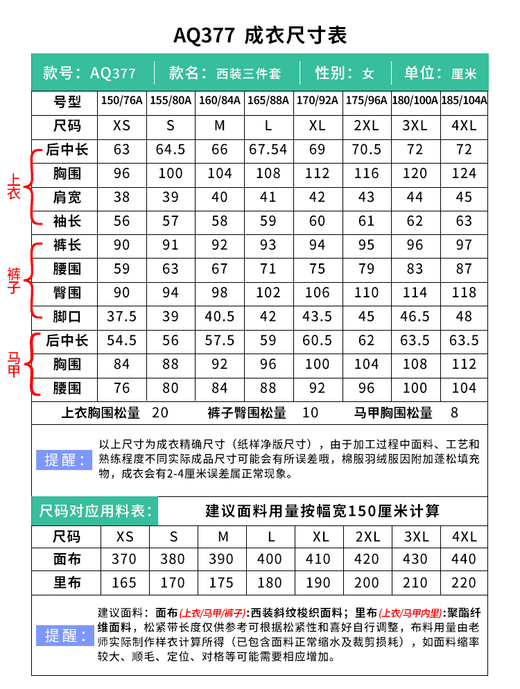 裁缝学苑AQ377西装外套纸样马甲直筒裤套装三件套裤子版型图纸