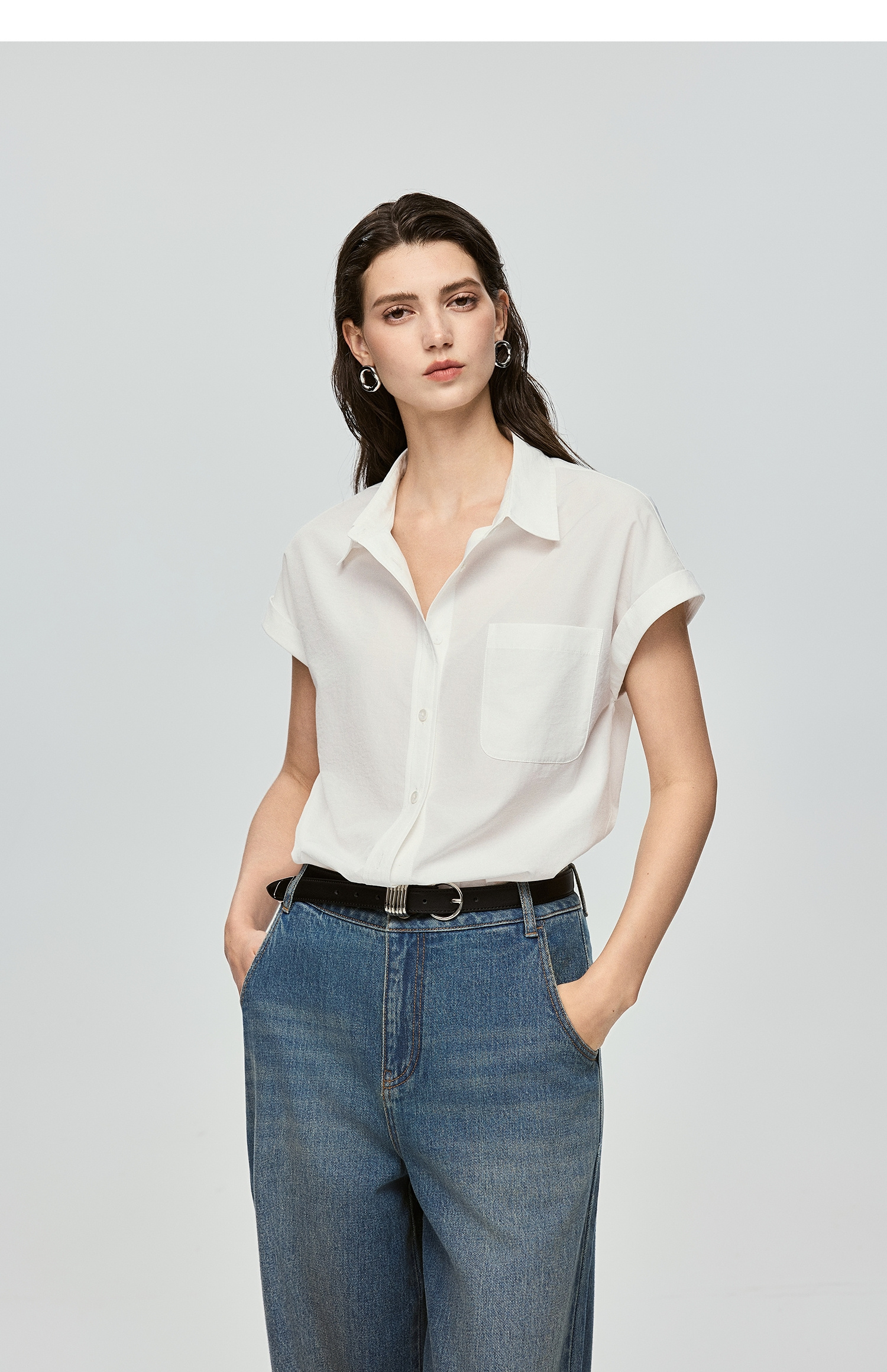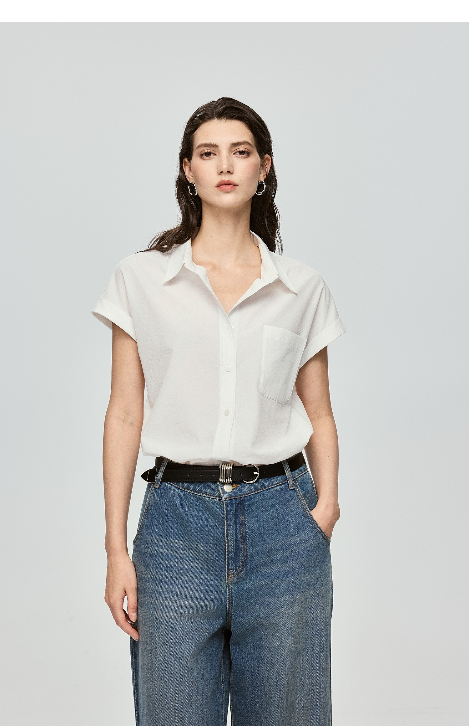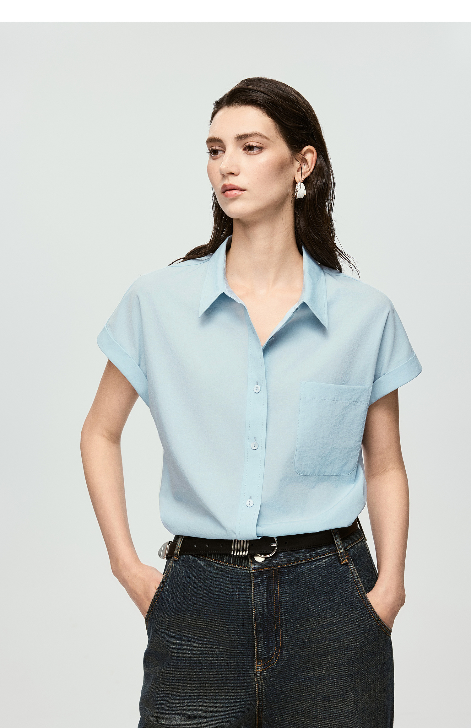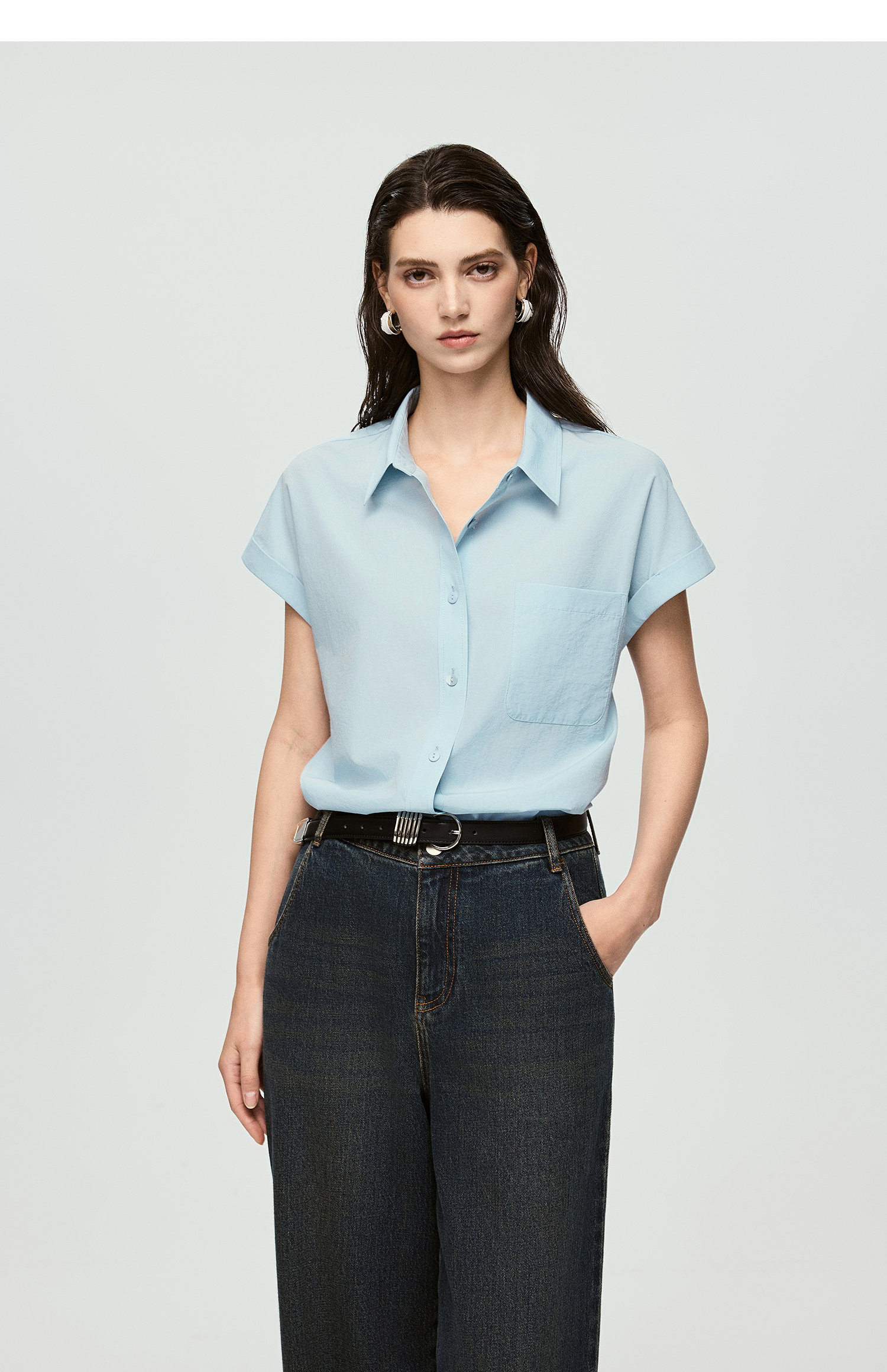 棉仓356804001-合体正肩版含羊毛TR弹翻领长袖衬衫