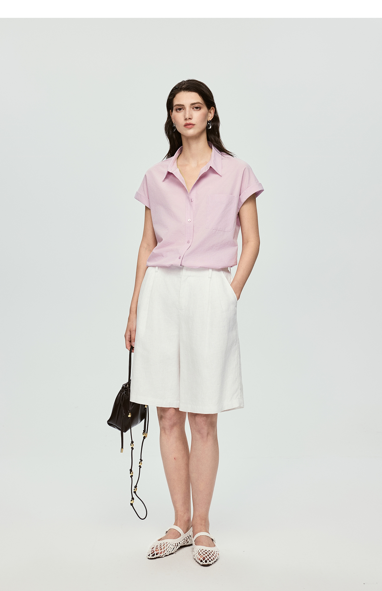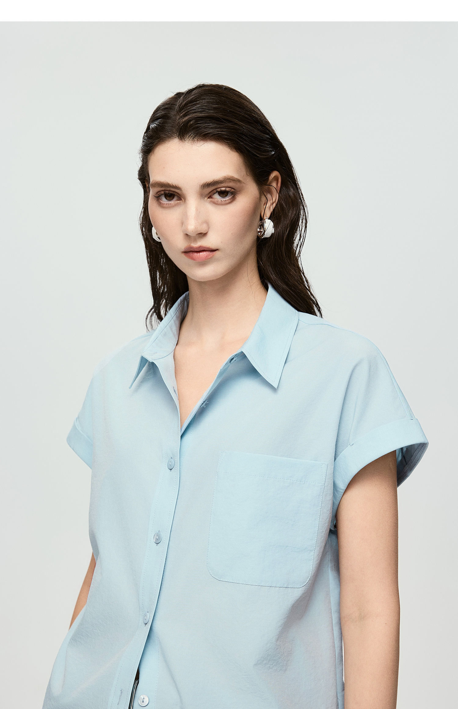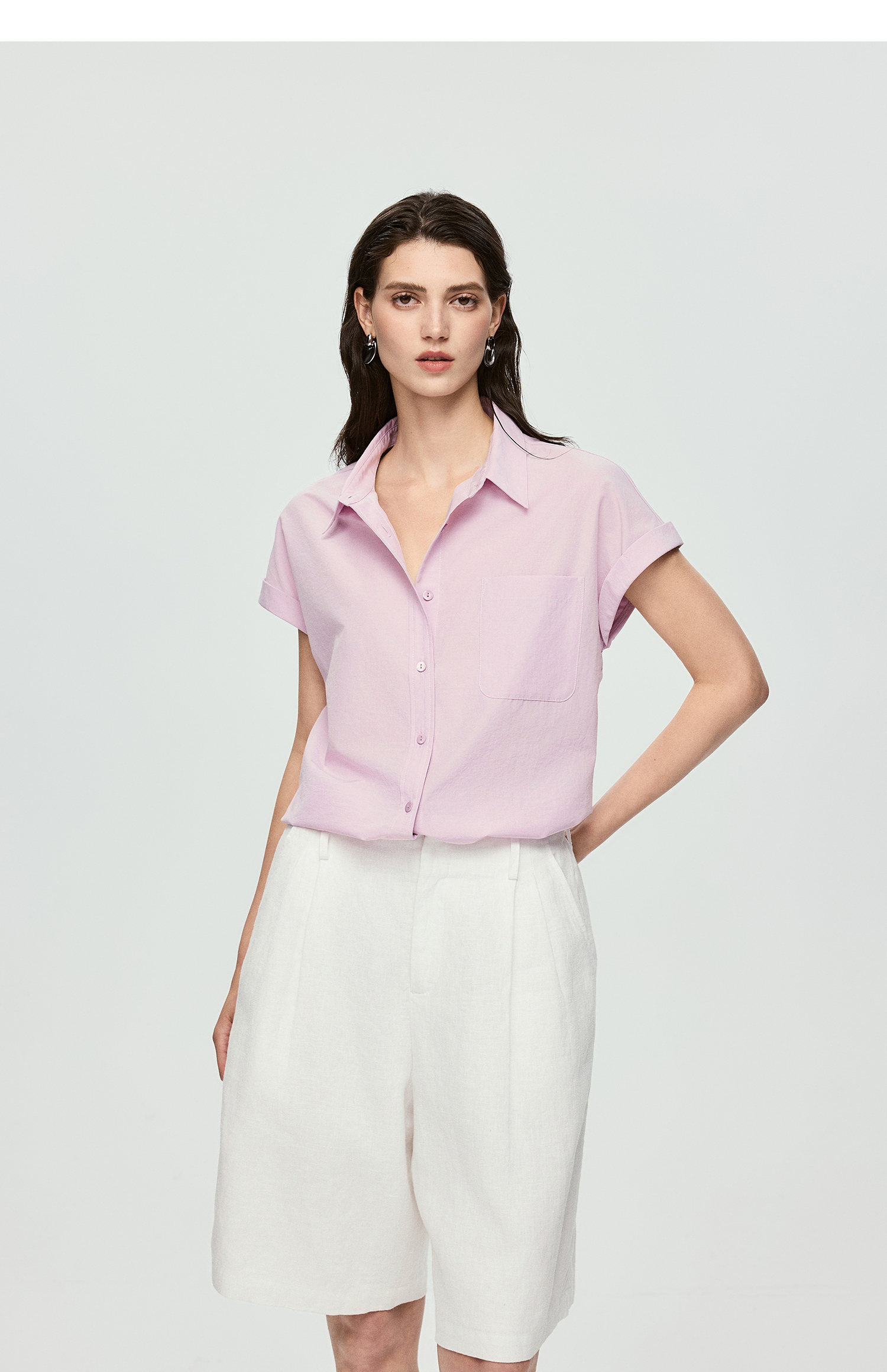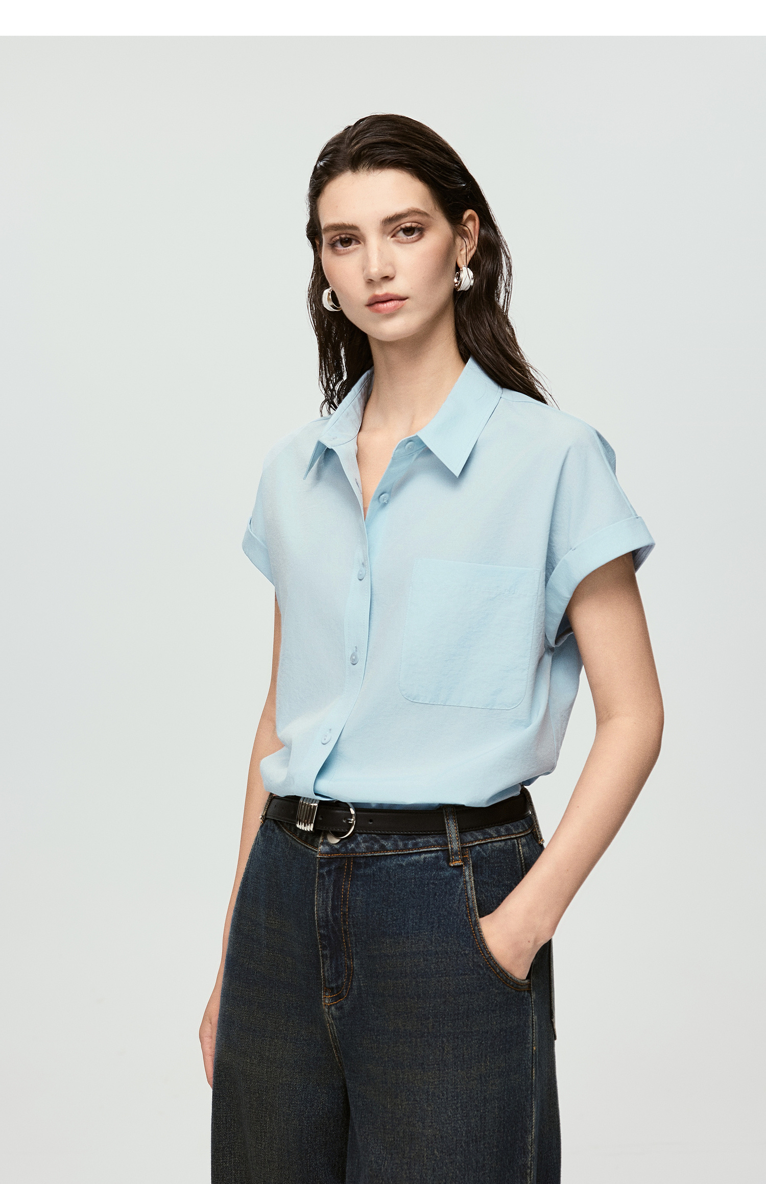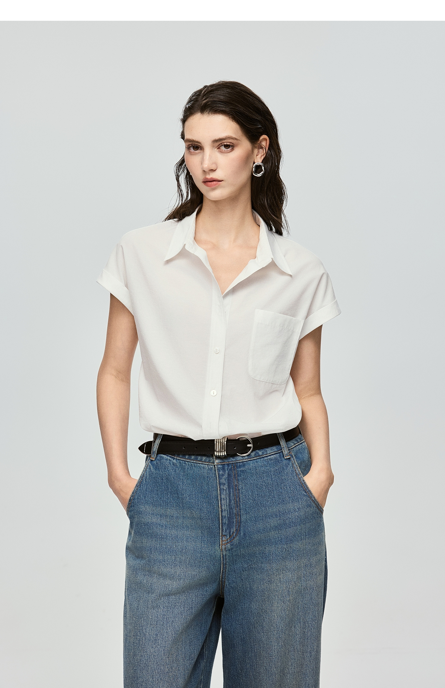 棉仓356804001-合体正肩版含羊毛TR弹翻领长袖衬衫