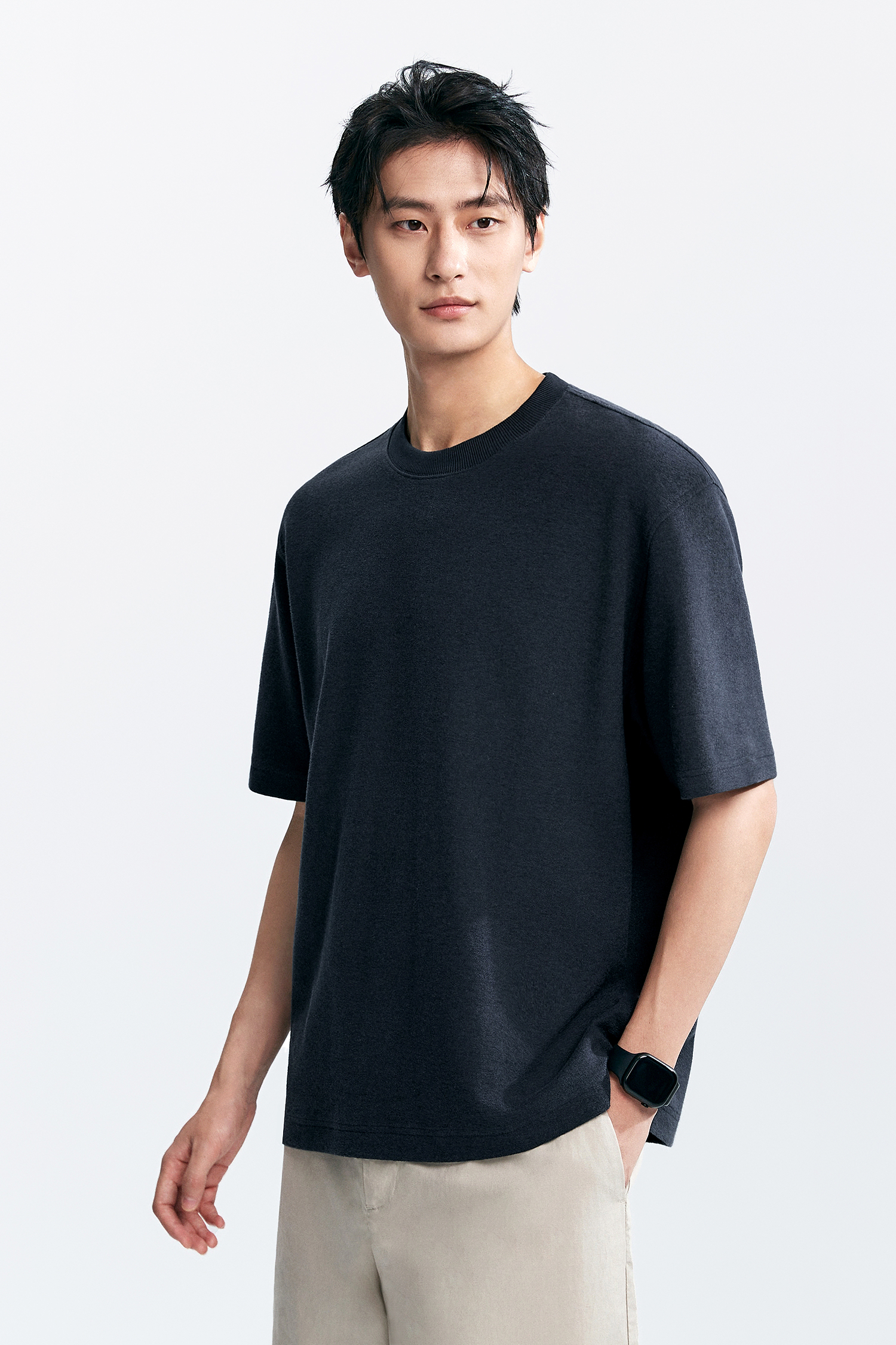 棉仓363801041-正肩微宽松毛巾布短袖T