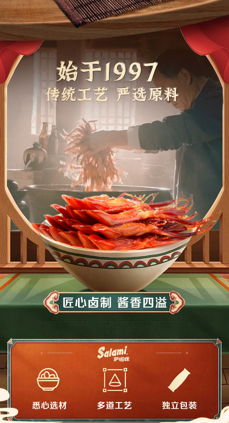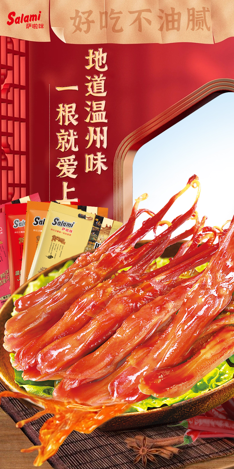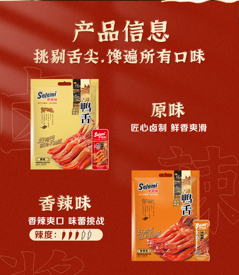 萨啦咪酱鸭舌温州特产零食小吃休闲食品鸭舌头熟食萨拉米大包500g