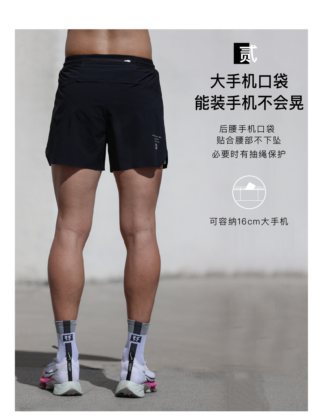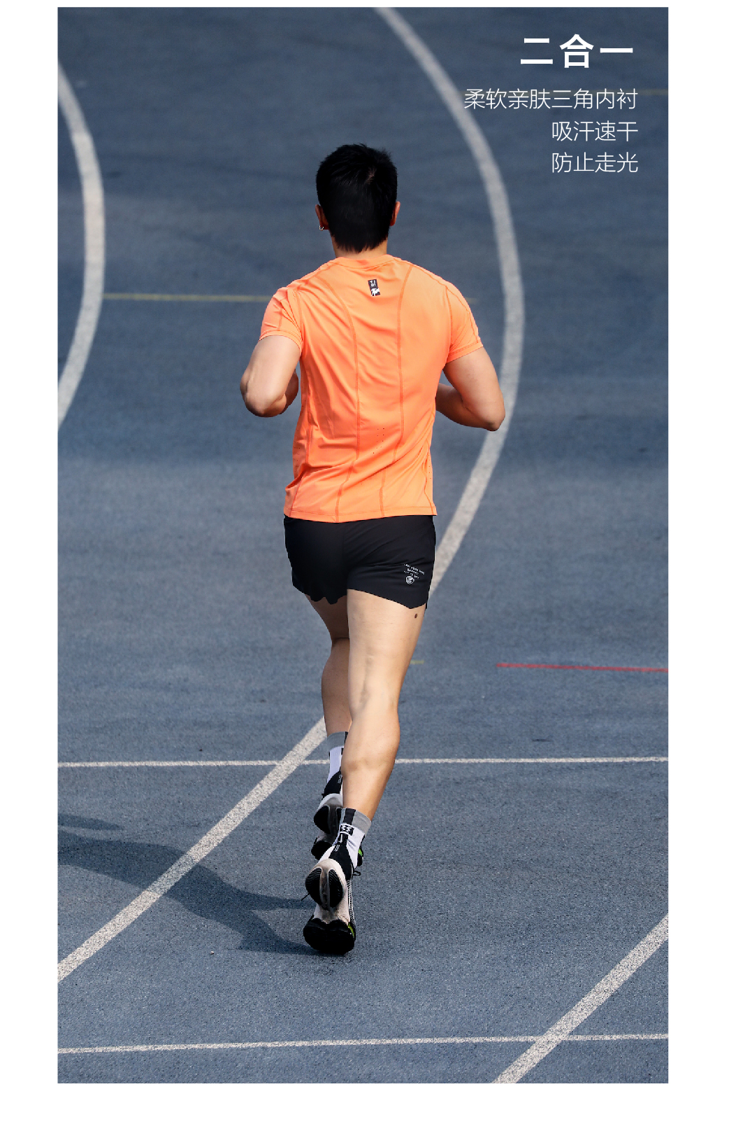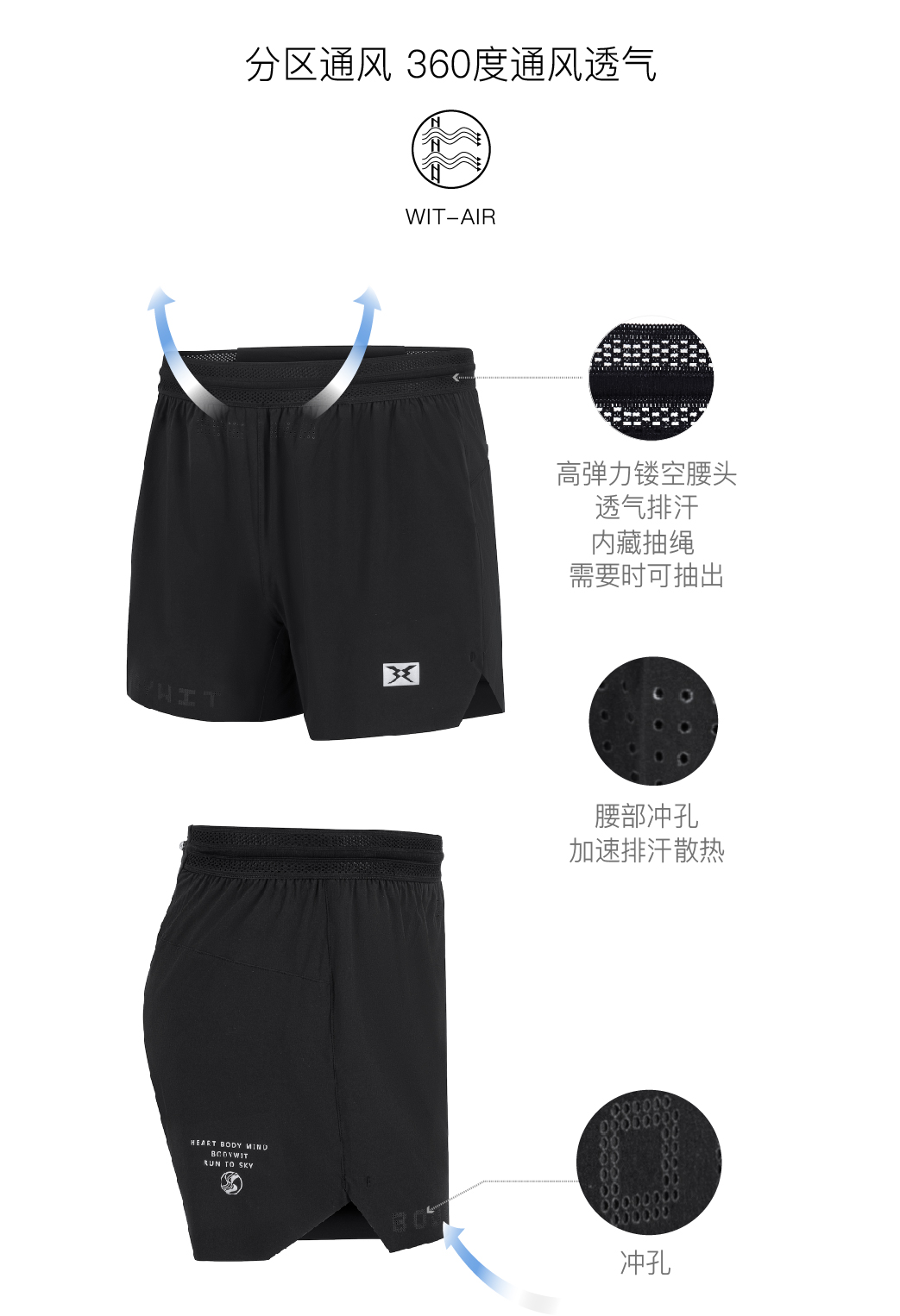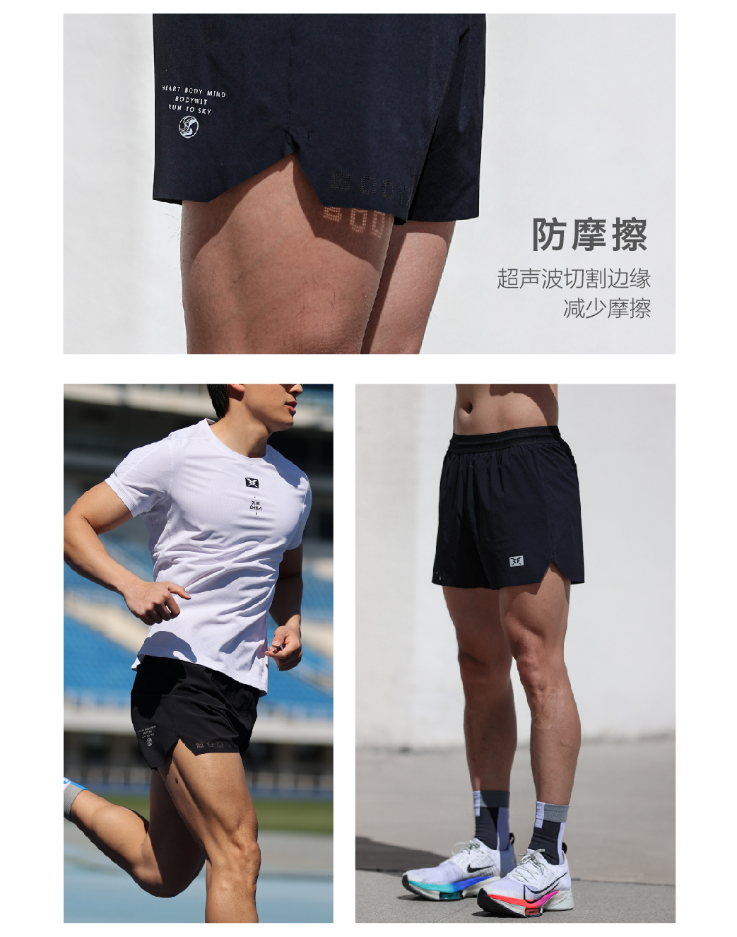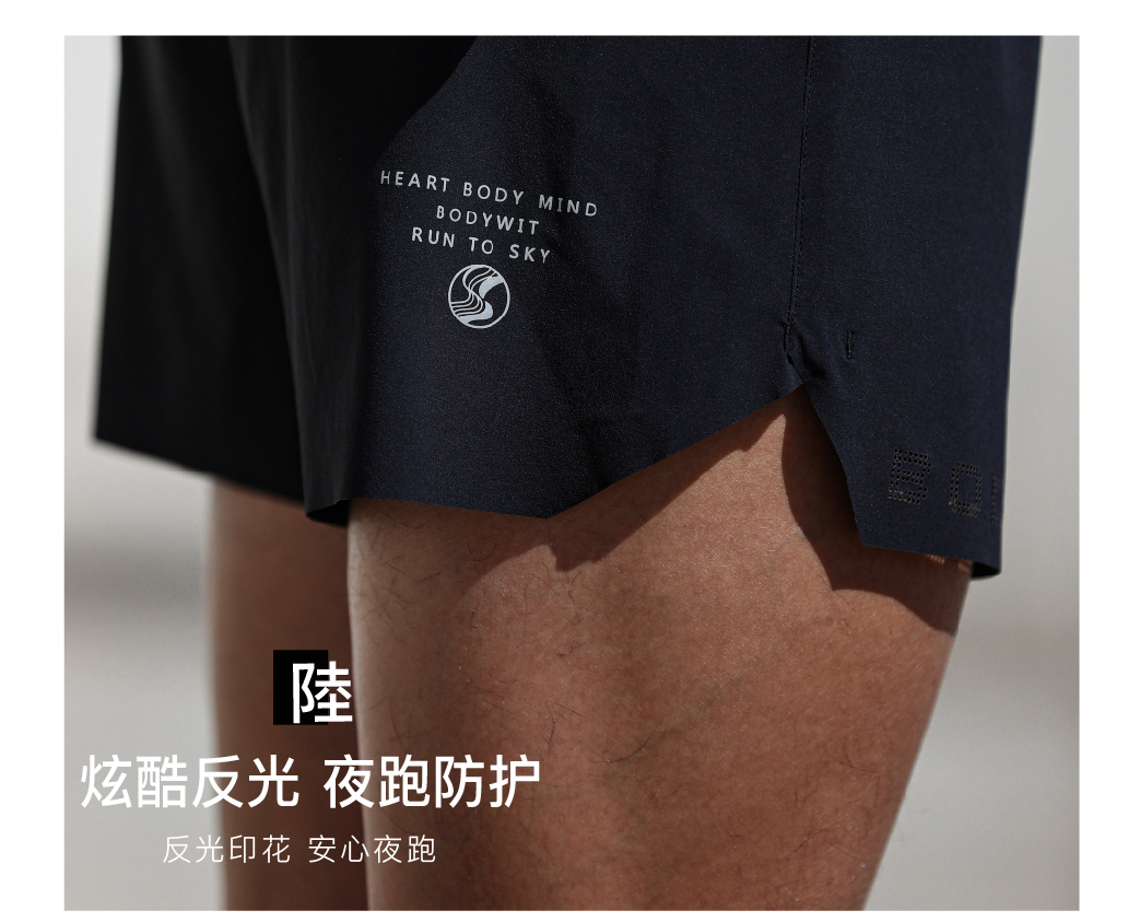 BODYWIT身体智慧飞天男3寸竞速跑步透气速干二合一手机袋短裤