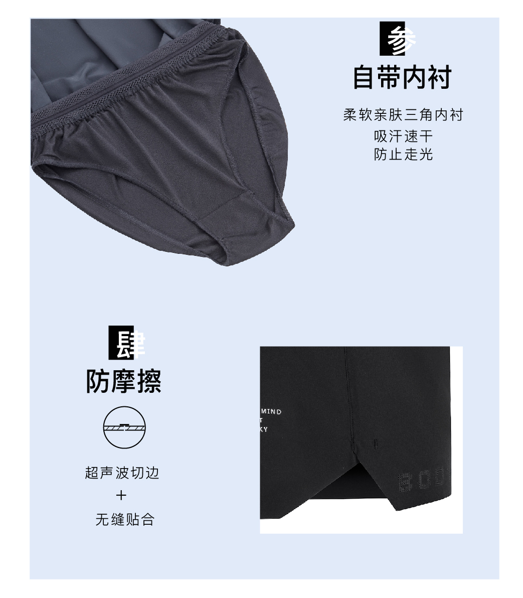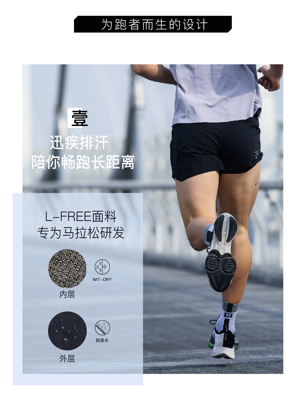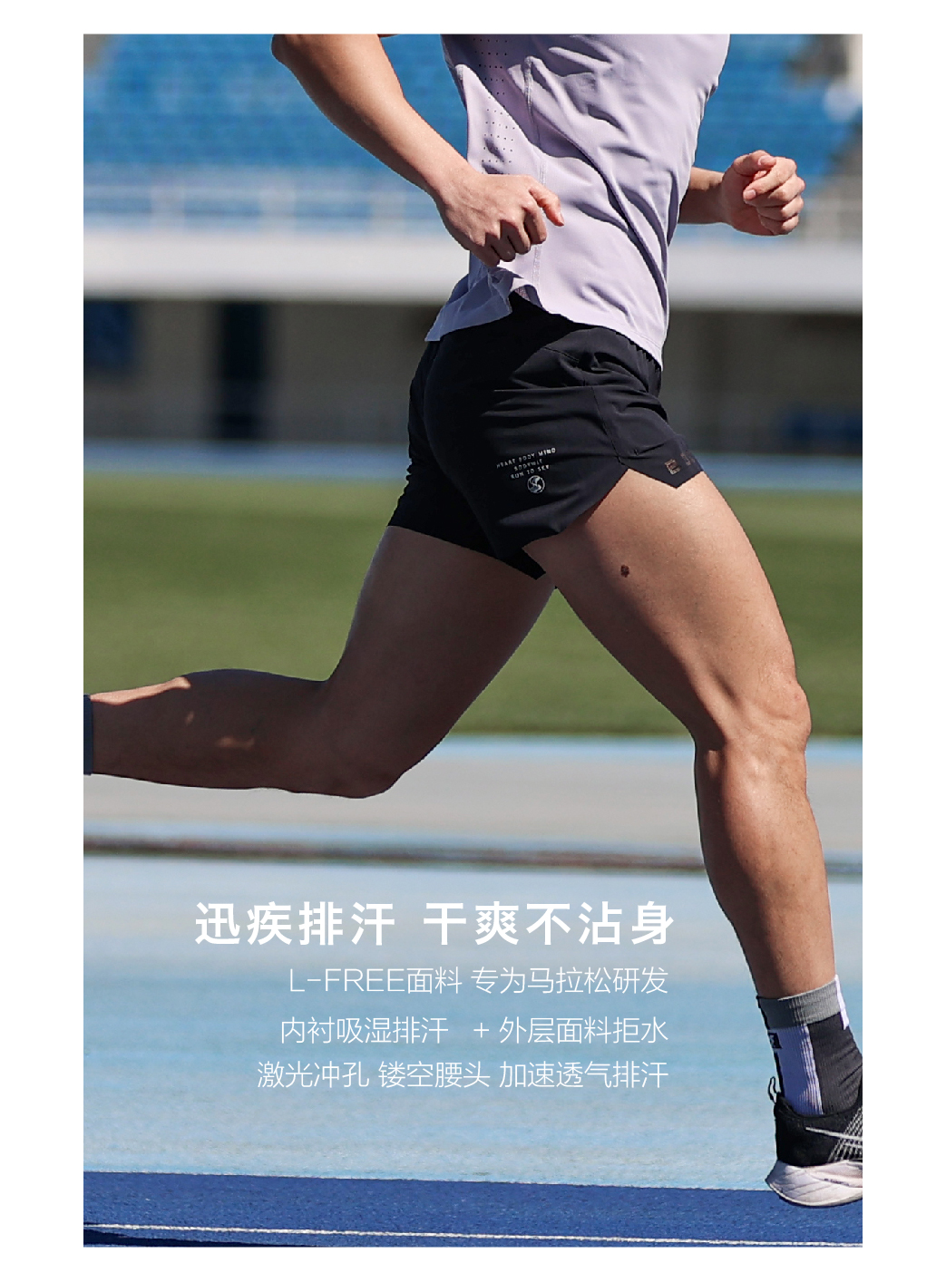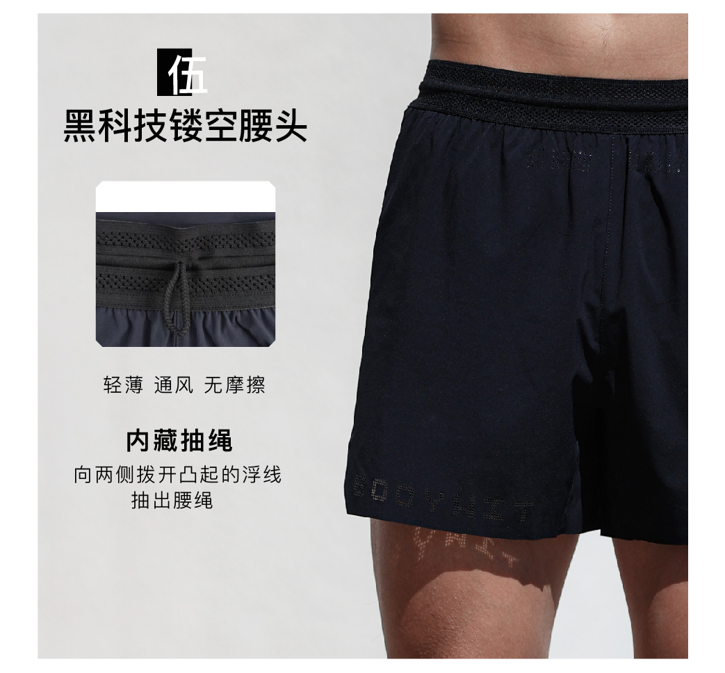 BODYWIT身体智慧飞天男3寸竞速跑步透气速干二合一手机袋短裤
