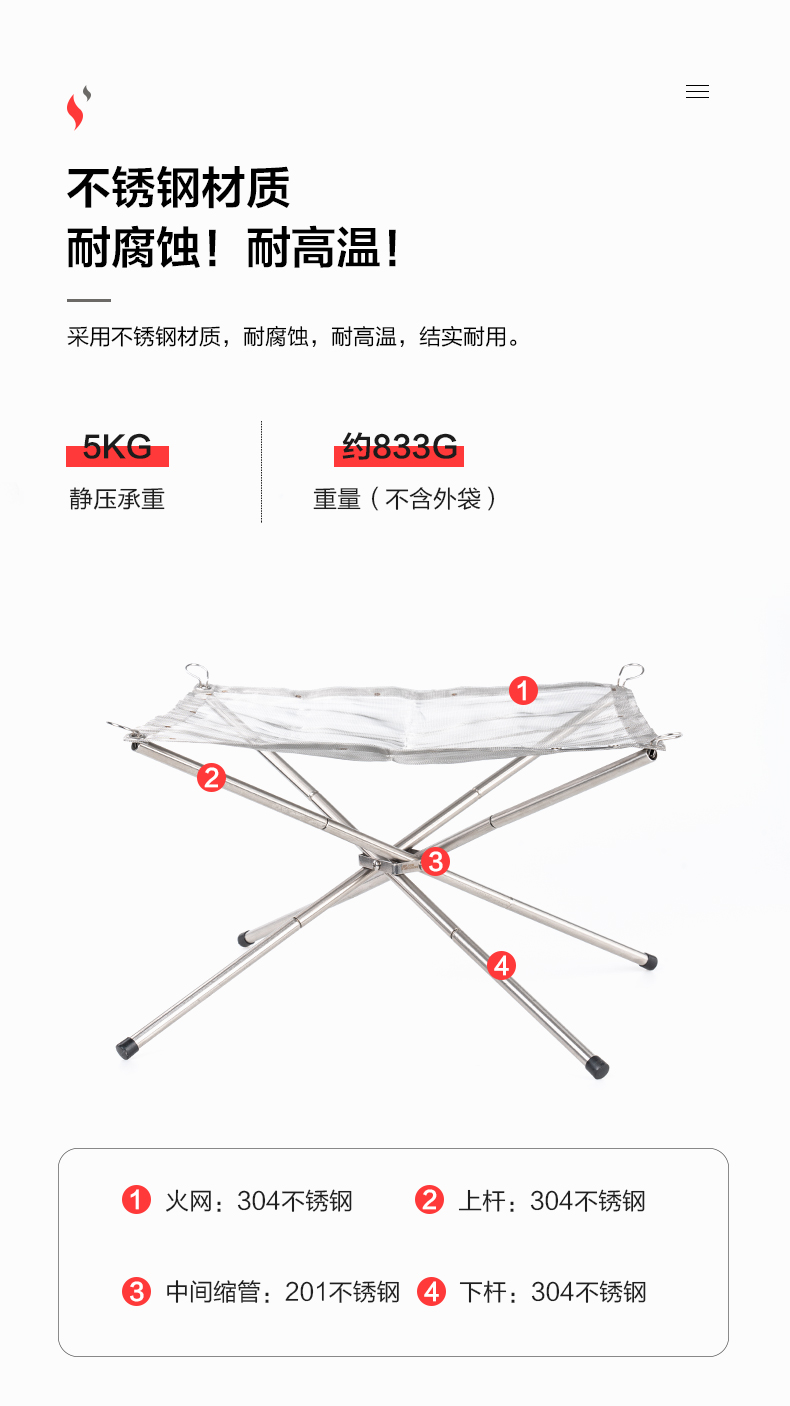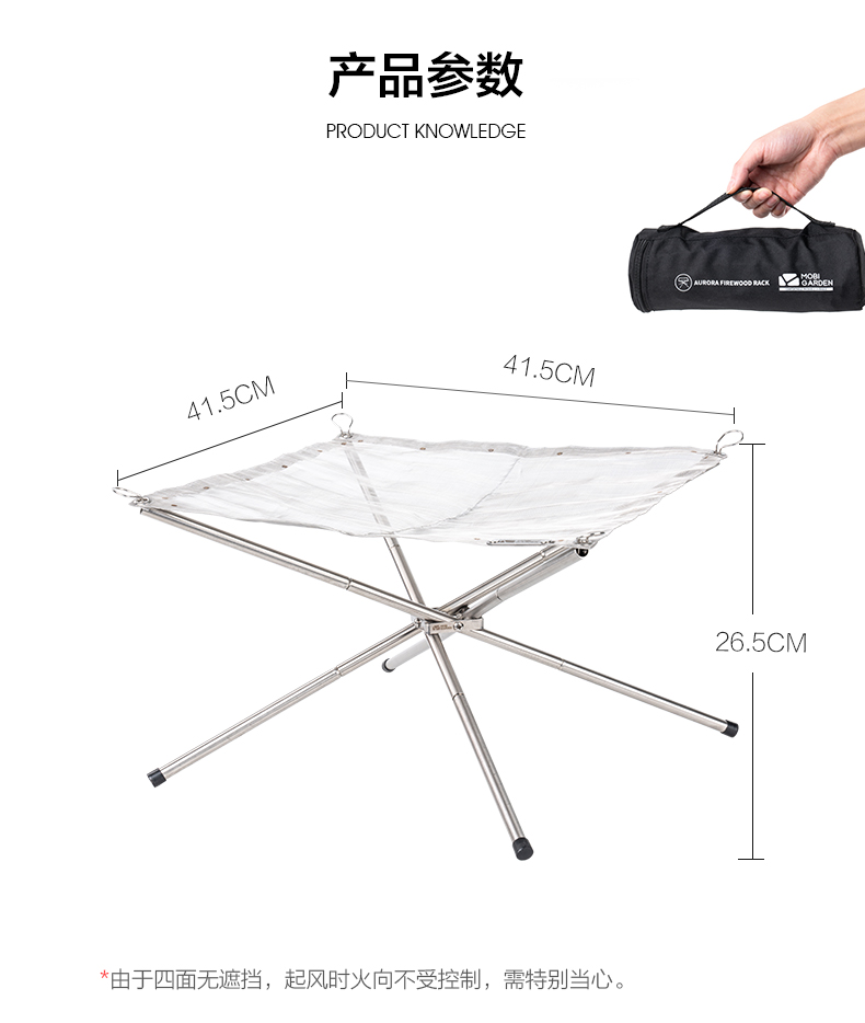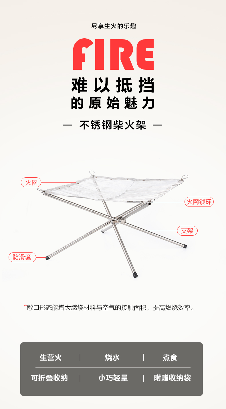 牧高笛 柴火架 户外精致露营 便携折叠轻量不锈钢烧烤炉