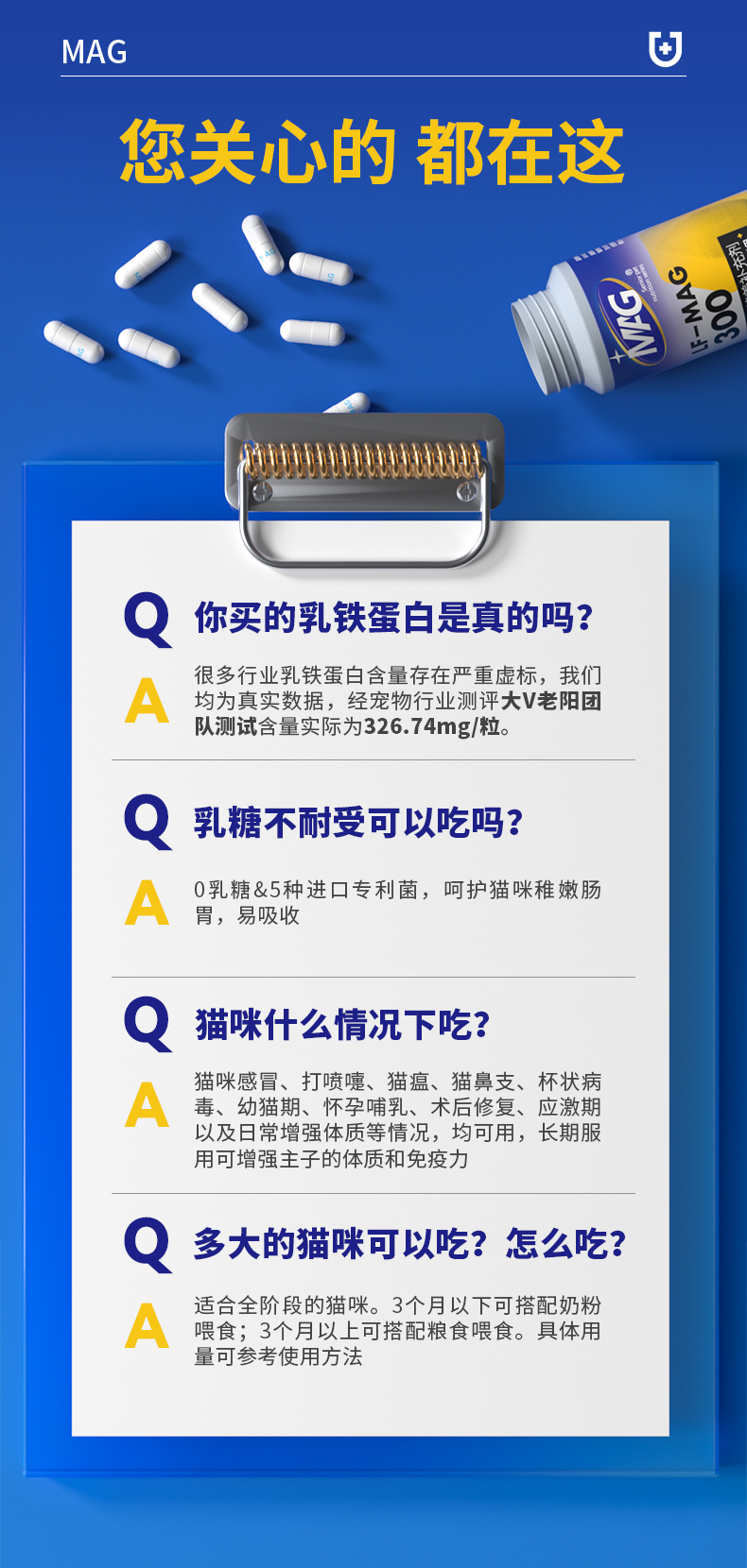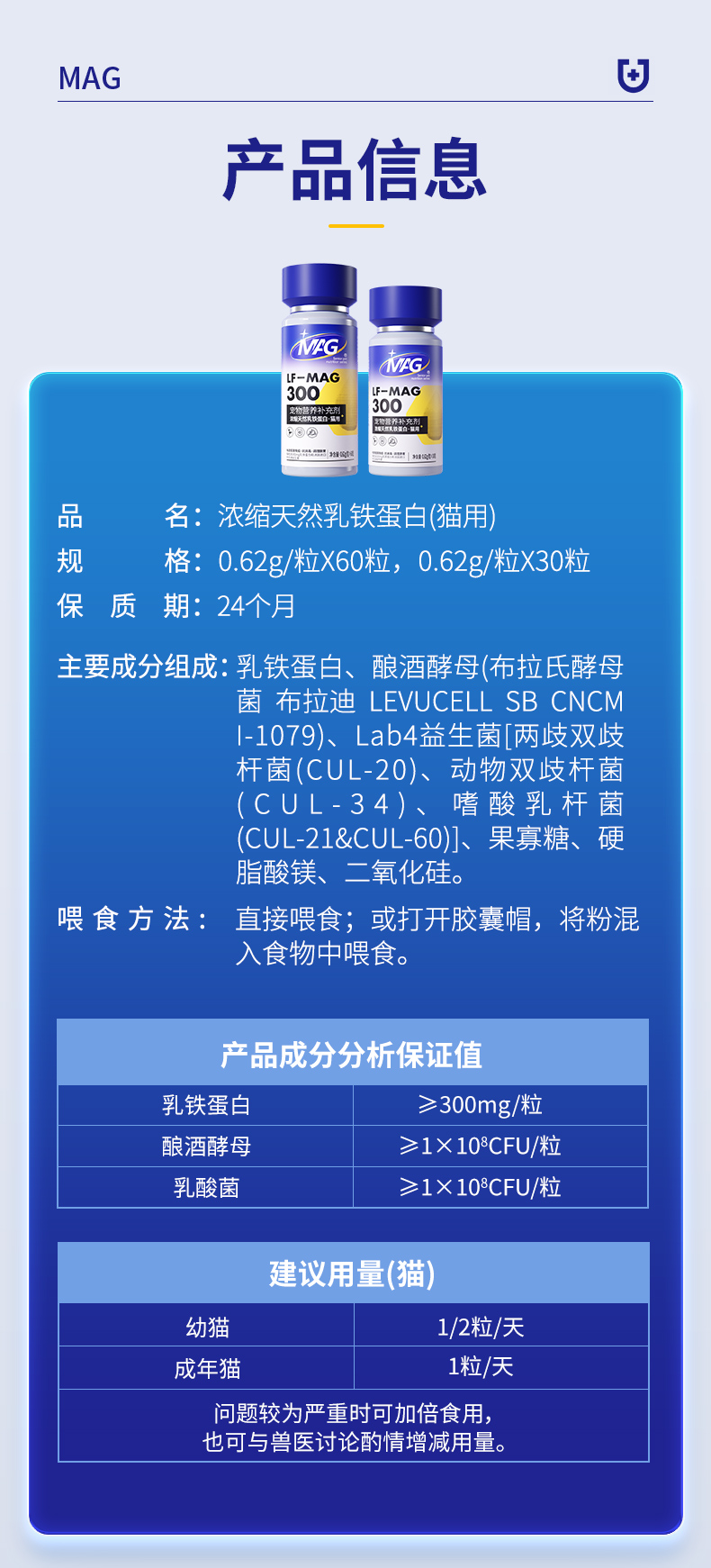 【U+系列】MAG浓缩天然乳铁蛋白(猫用)-幼猫0乳糖乳铁蛋白胶囊抗病毒提升免疫力