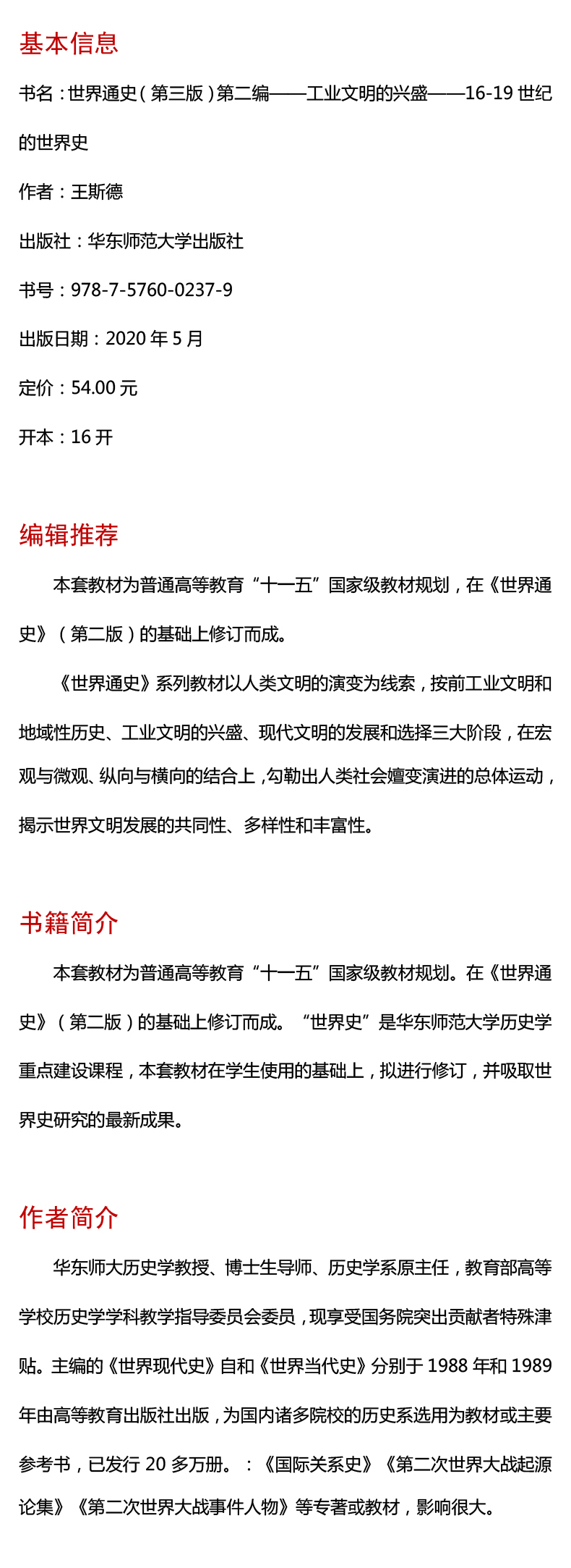 世界通史 第三版 第二编 工业文明的兴盛 16-19世纪的世界史 高校教材 正版 华东师范大学出版社