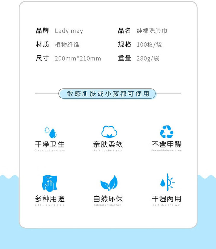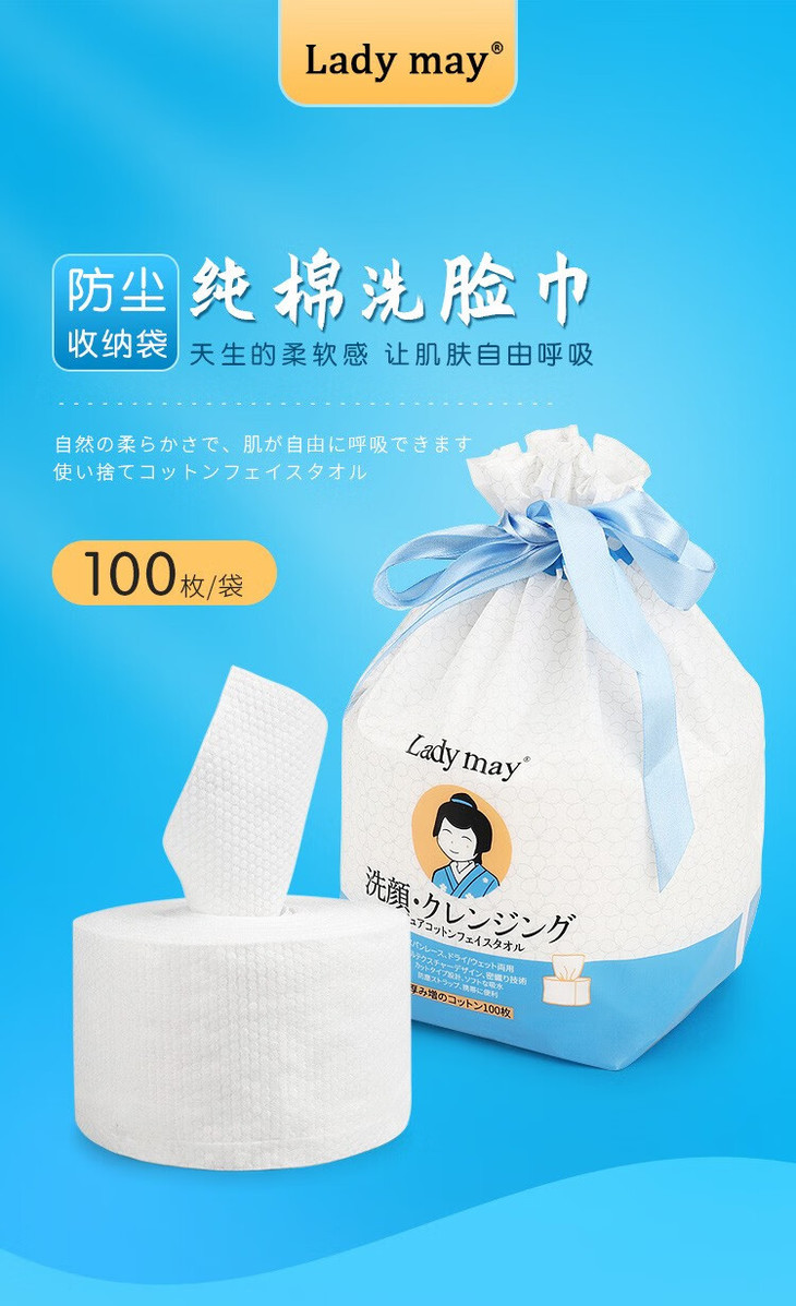 LadymayEF纹加厚纯棉洁面巾(100抽) 易好