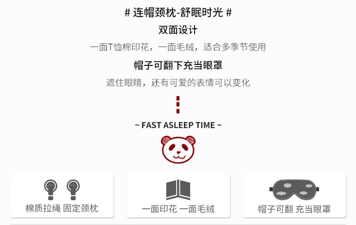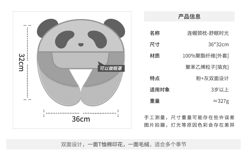 熊猫屋PANDAHOUSE 连帽颈枕-舒眠时光