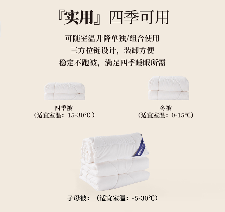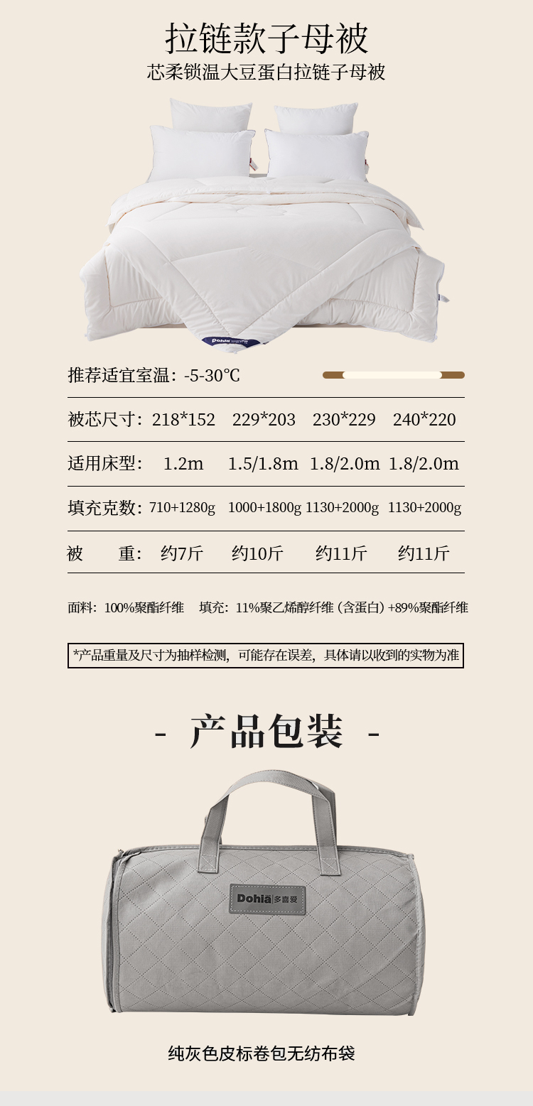 多喜爱 芯柔锁温大豆蛋白春秋被/冬被/拉链子母被【A类抗菌面料】【大豆蛋白】【四季通用】