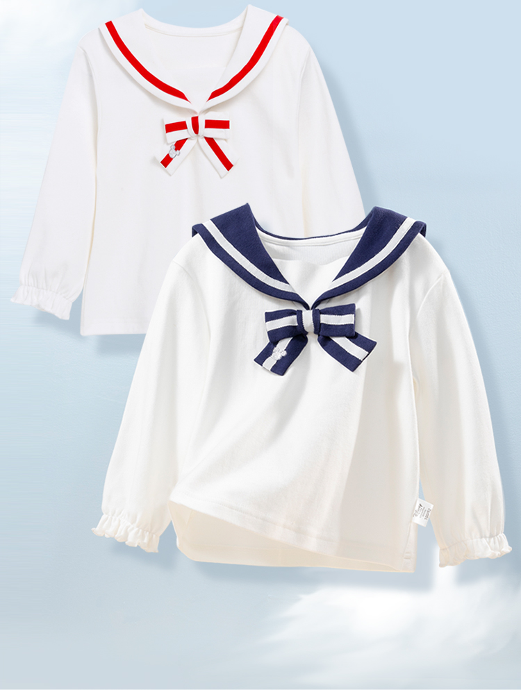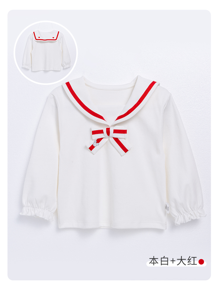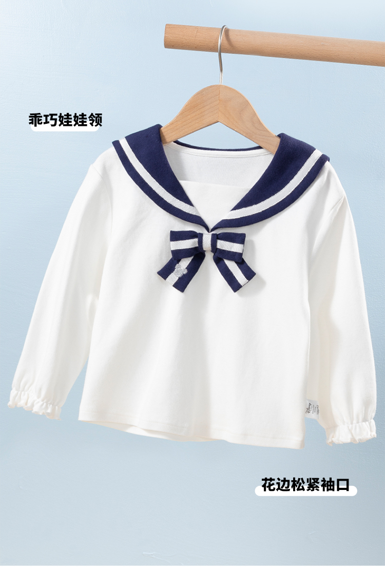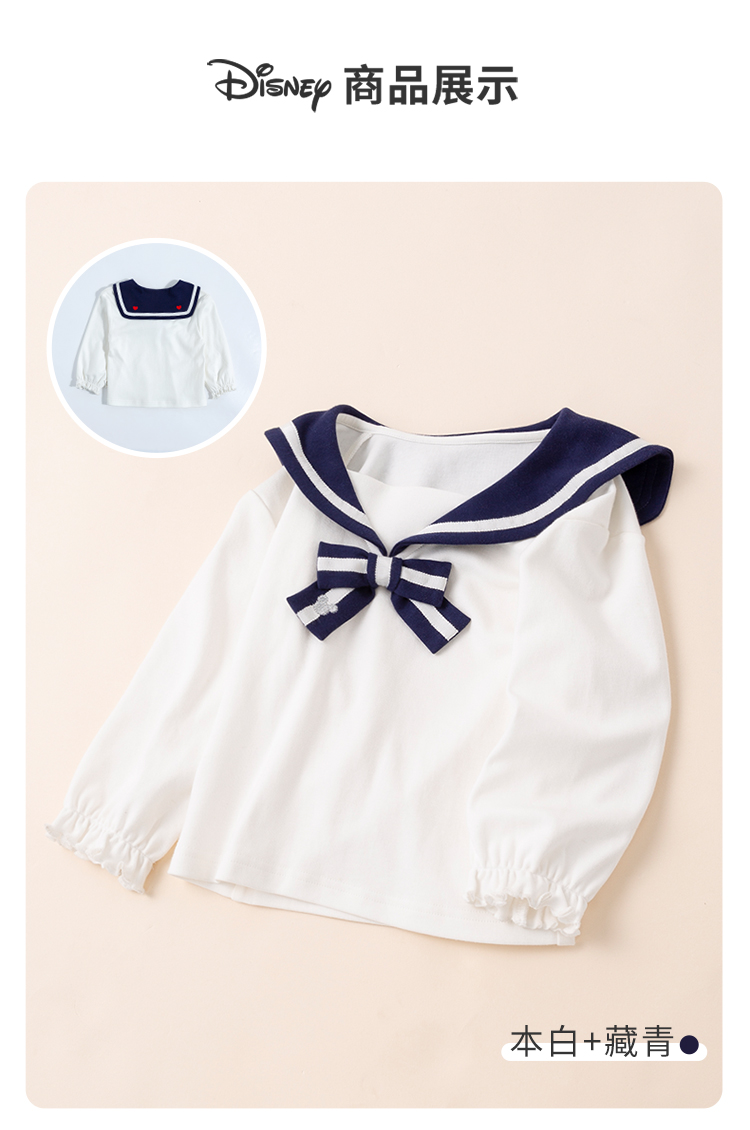 【商场同款】迪士尼童装女童长袖甜美T恤2024春秋新款海军风娃娃领宝宝上衣223DS0648