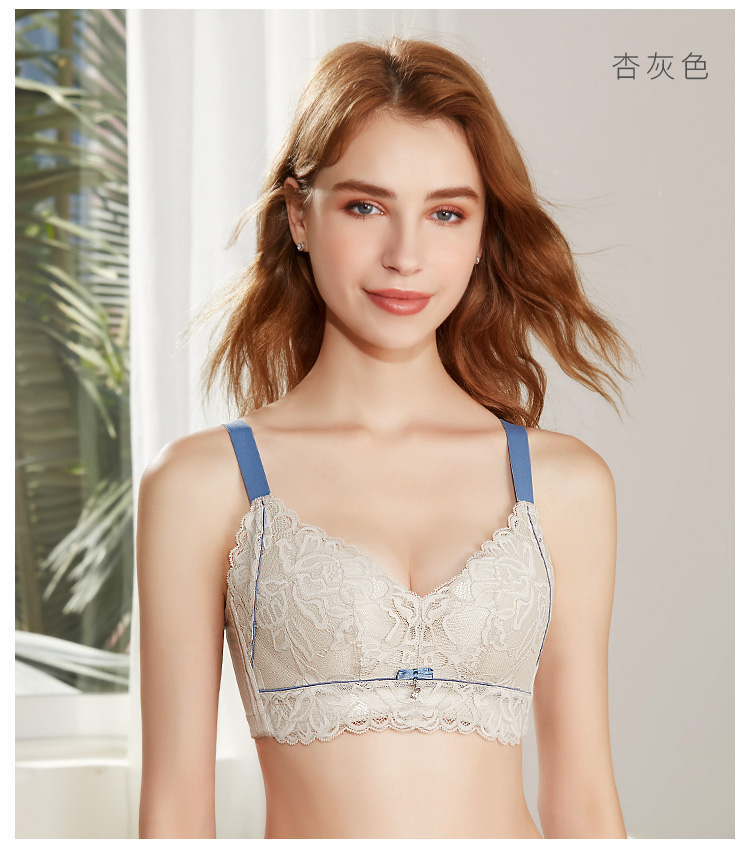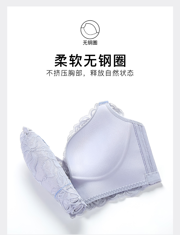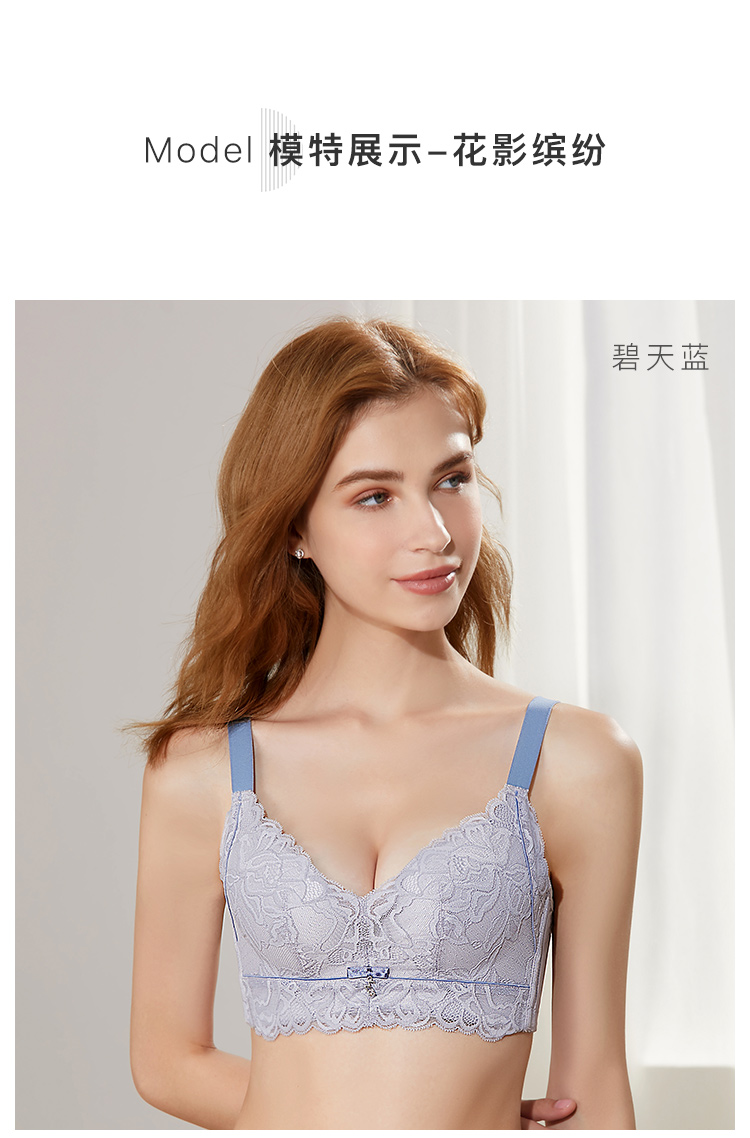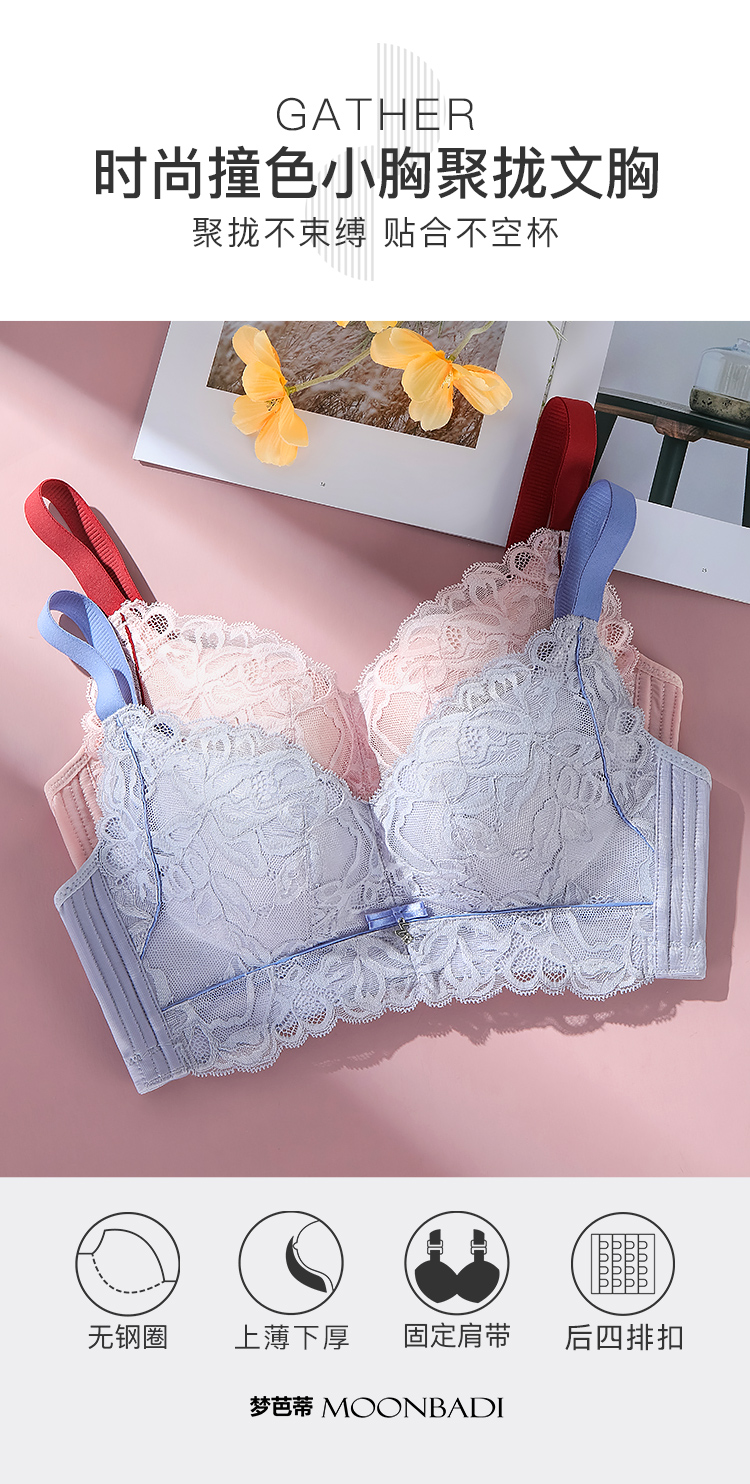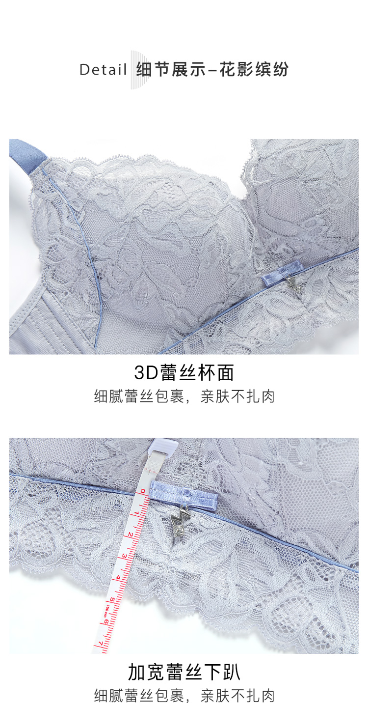 梦芭蒂内衣女大胸显小文胸收副乳防下垂无钢圈胸罩花影缤纷薄
