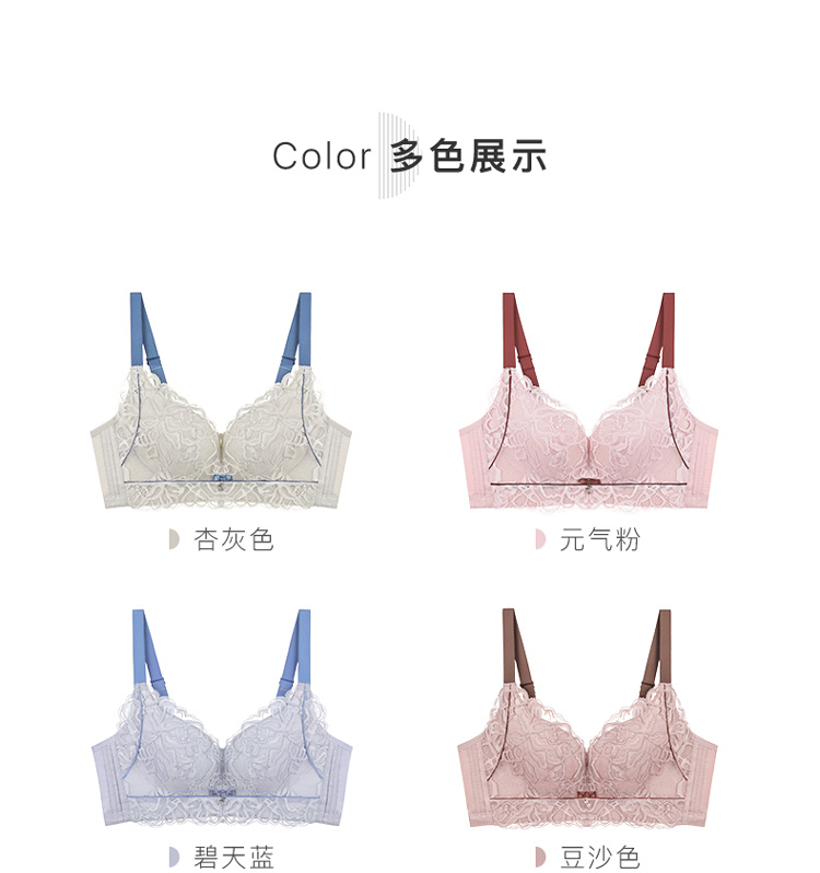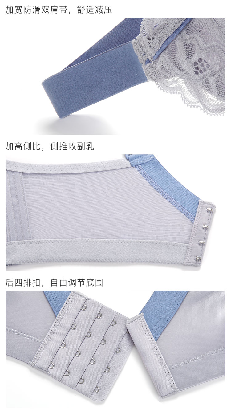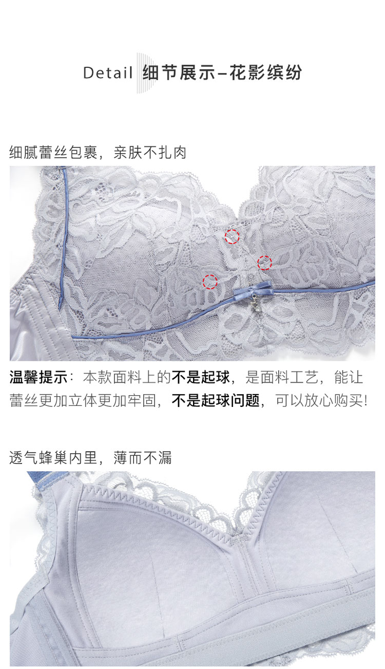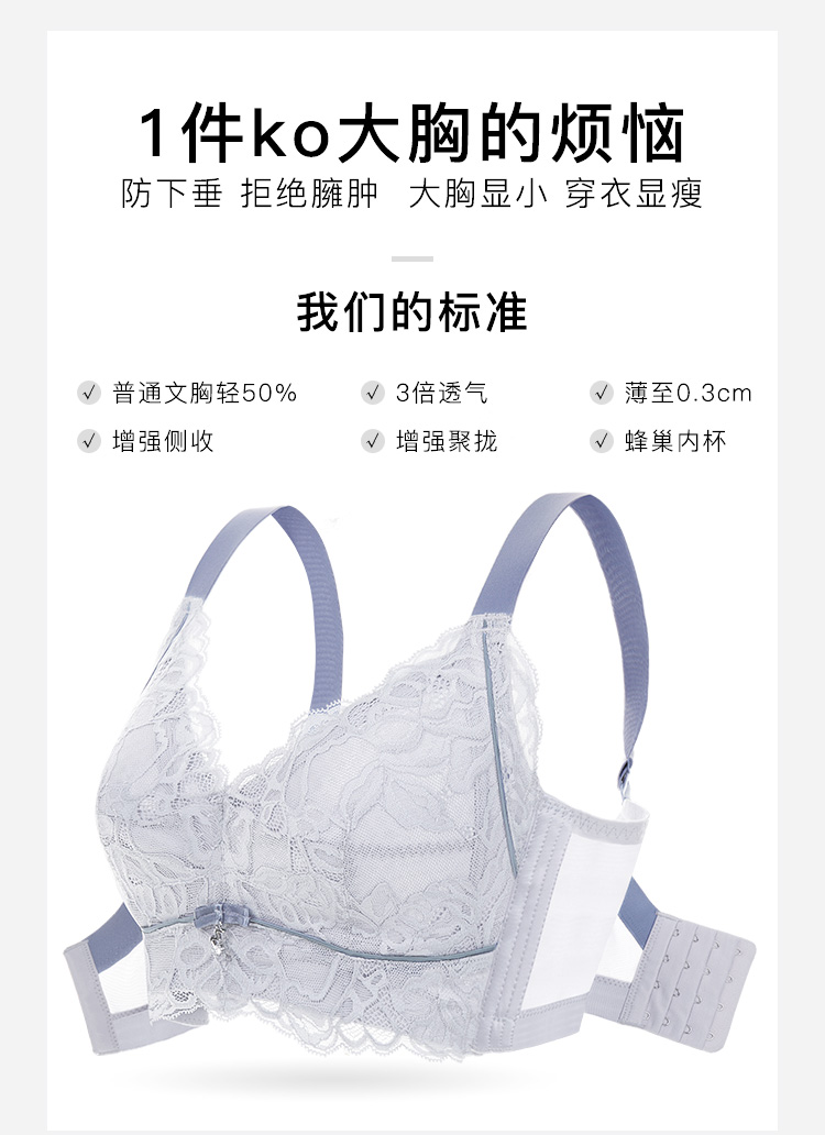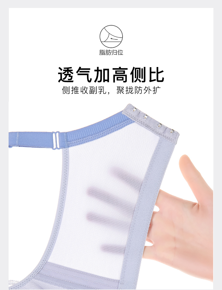 梦芭蒂内衣女大胸显小文胸收副乳防下垂无钢圈胸罩花影缤纷薄