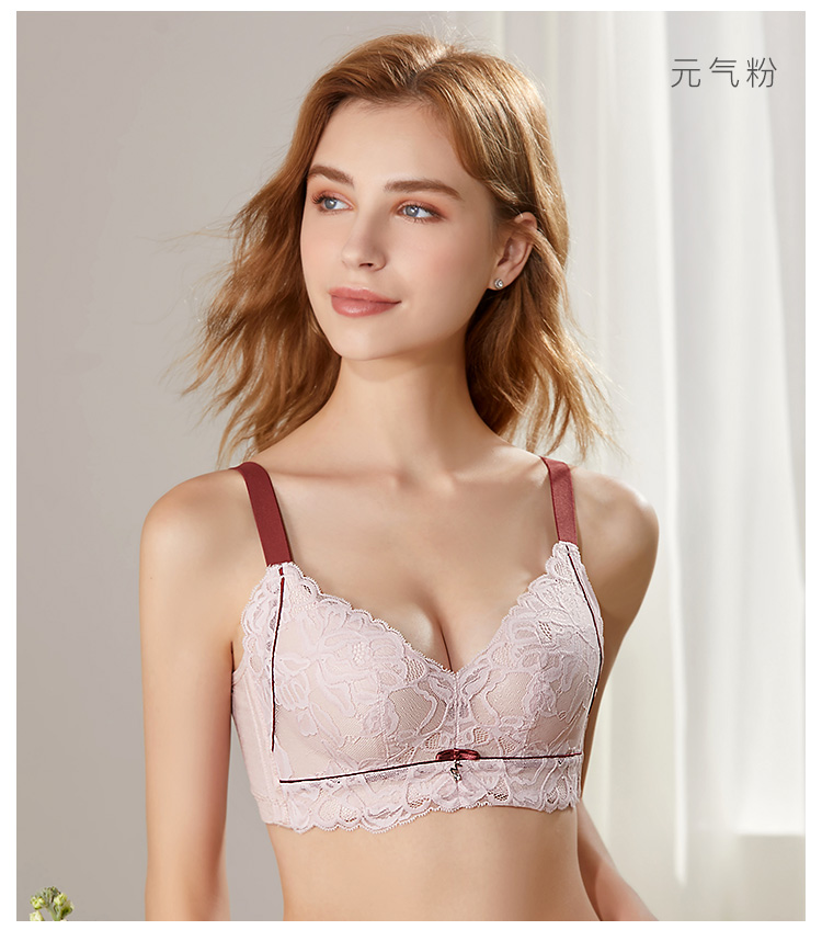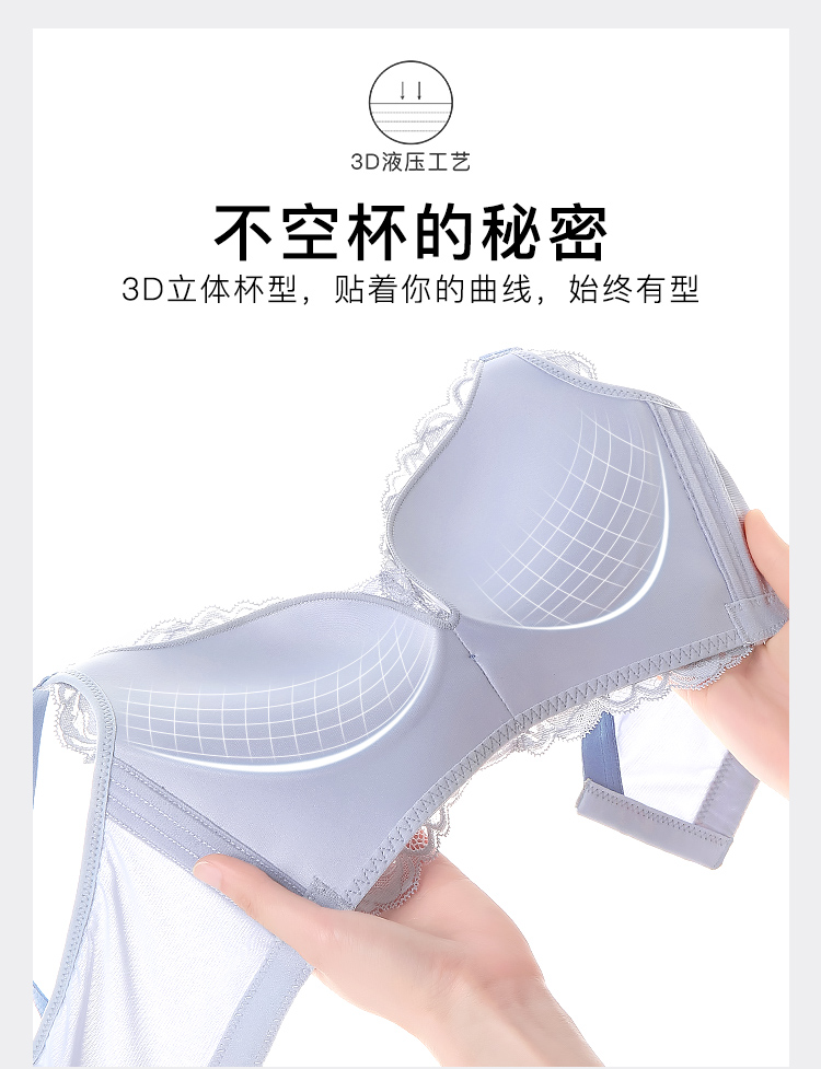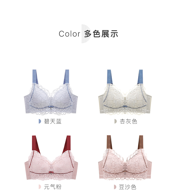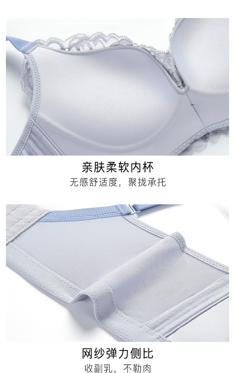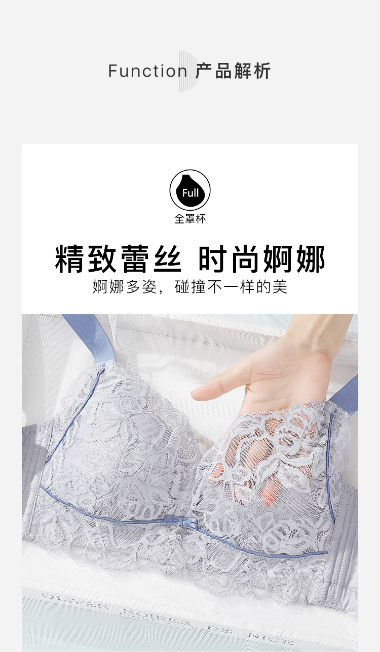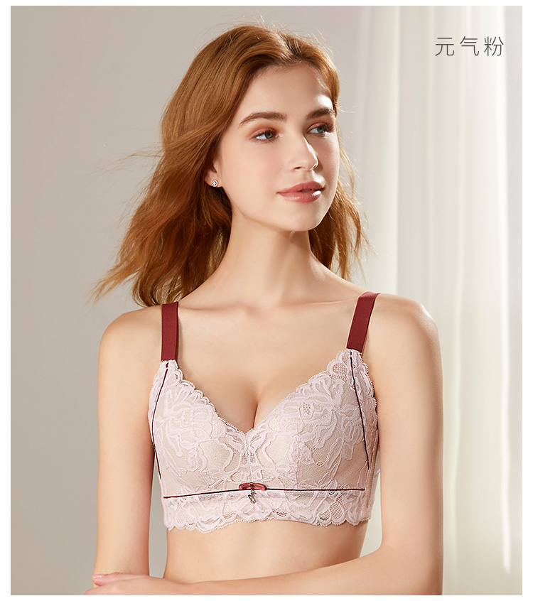 梦芭蒂内衣女大胸显小文胸收副乳防下垂无钢圈胸罩花影缤纷薄