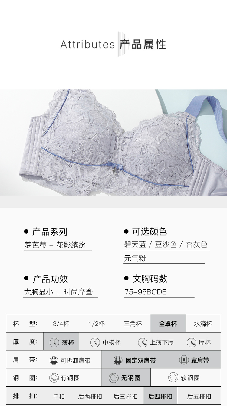 - 梦芭蒂品牌文胸让爱美女性在调整型的同时享受舒适,赢得中国广大女性的青睐。内衣款式的原始设计理念在追求其功能性,舒适性的同时,更注重其时尚美观性。