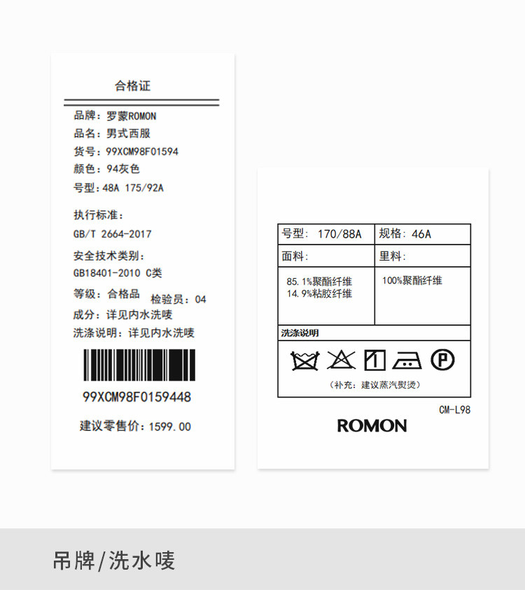 面料:85.1%聚酯纤维14.9%粘胶纤维