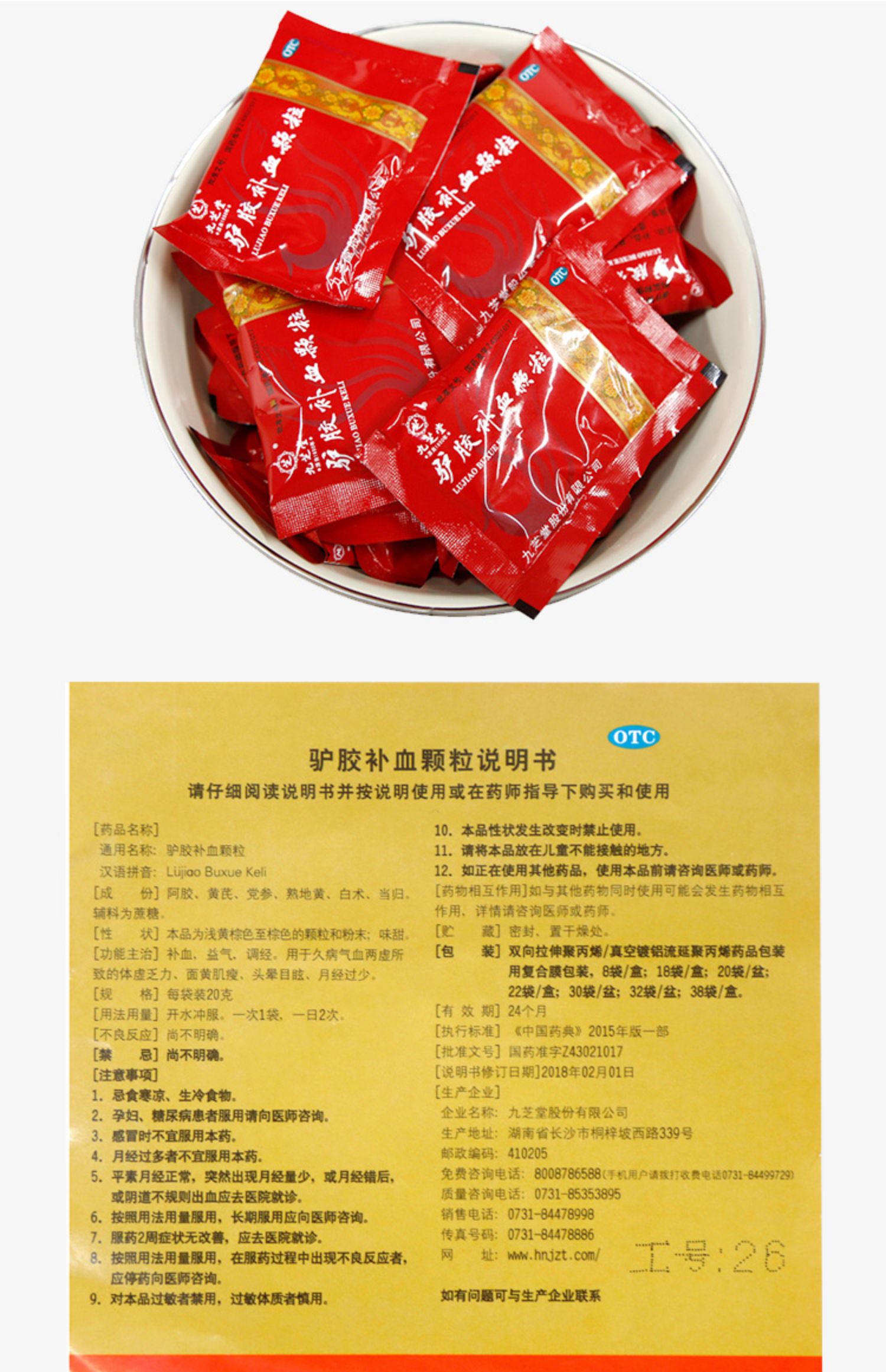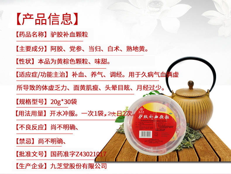 九芝堂驴胶补血颗粒8袋阿胶女人补气血双补气虚血亏调经贫血调理
