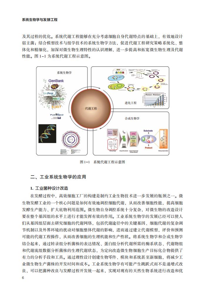 本书主要内容包括系统生物学资源库和研究工具;重要发酵工业微生物的全基因组规模网络模型的构建与应用;系统生物学在维生素C、燃料乙醇、丙酮酸发酵、益生菌生产、白酒酿造中的应用以及系统生物学在毕赤酵母生产外源蛋白中的应用。