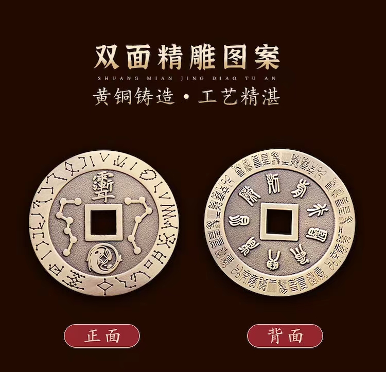 九字真言纯铜吊坠,紫微讳铜钱,家居挂饰,车挂