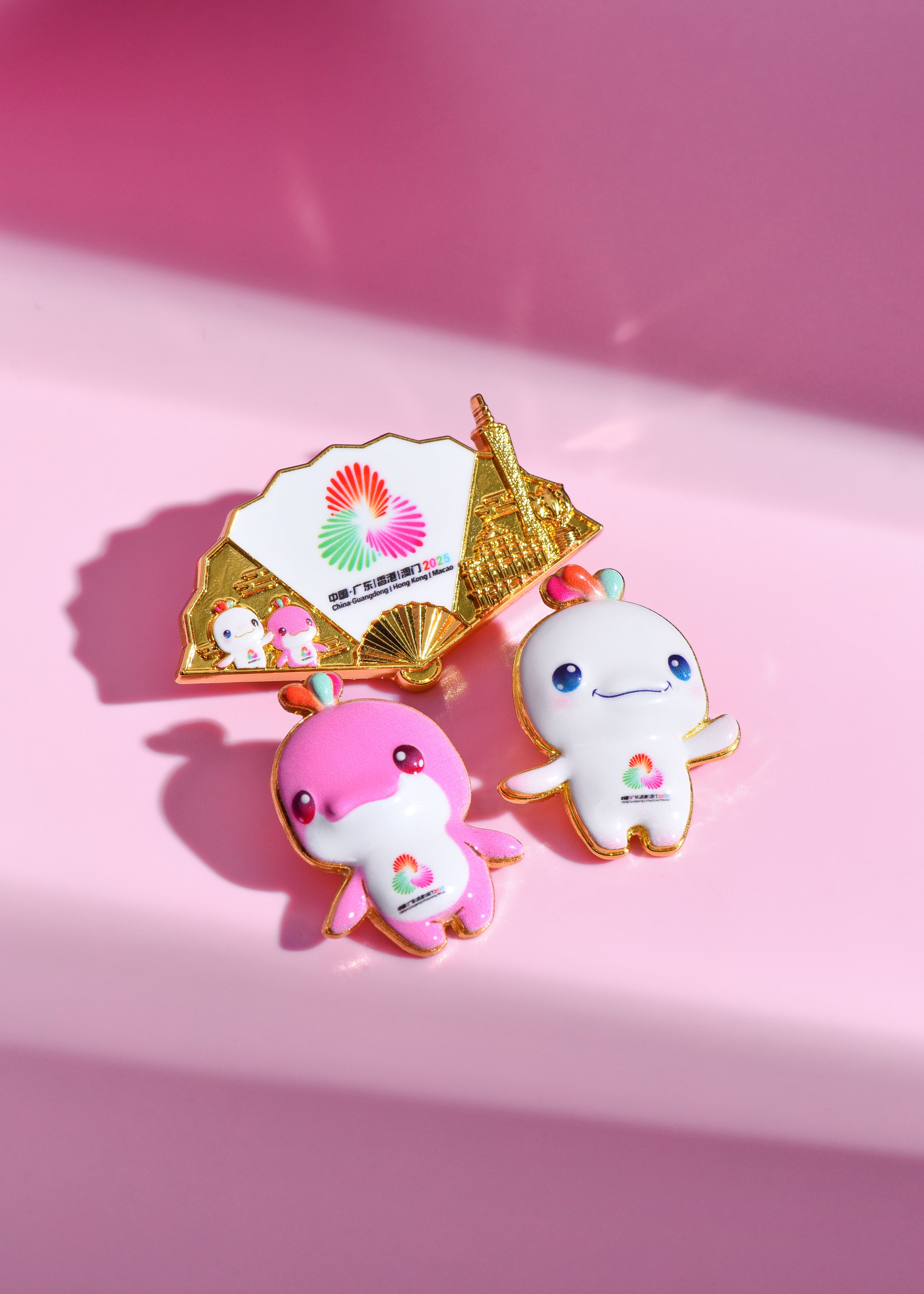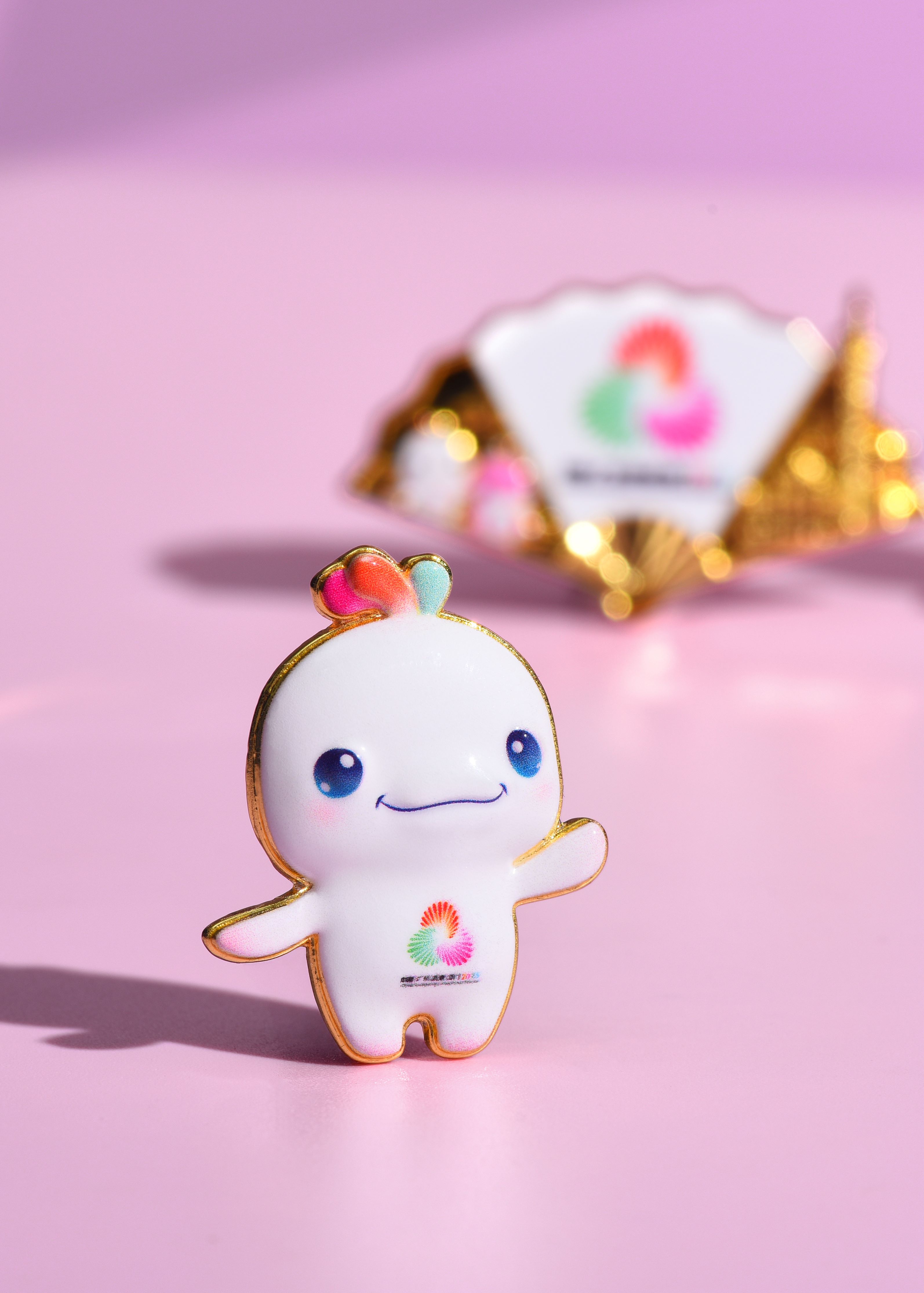 喜洋洋立体浮雕徽章+乐融融立体浮雕徽章+扇形创意会徽徽章