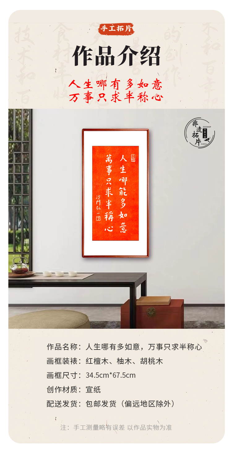 非遗传承 朱砂拓印 弘一法师书法拓片作品