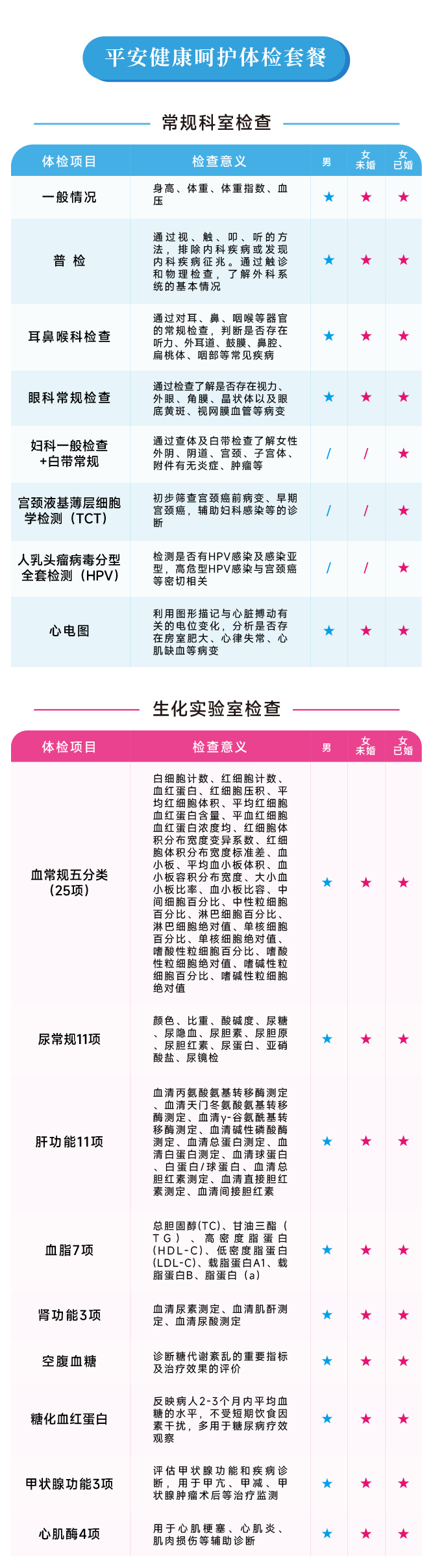 【美亚新品】平安呵护健康体检套餐(泉州分院)