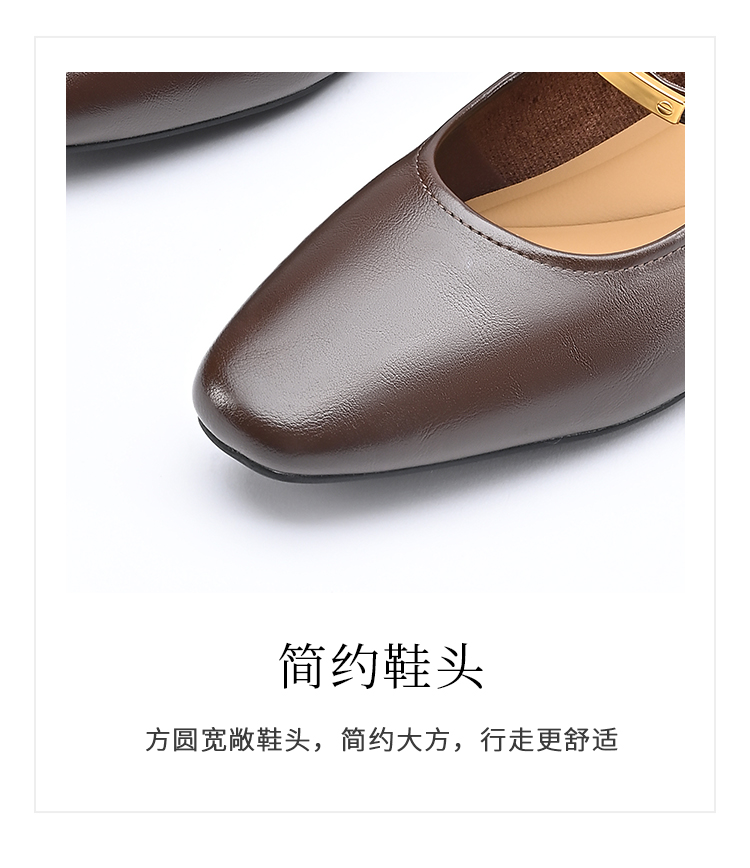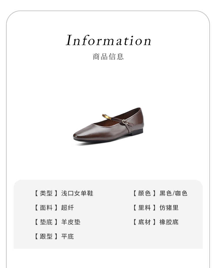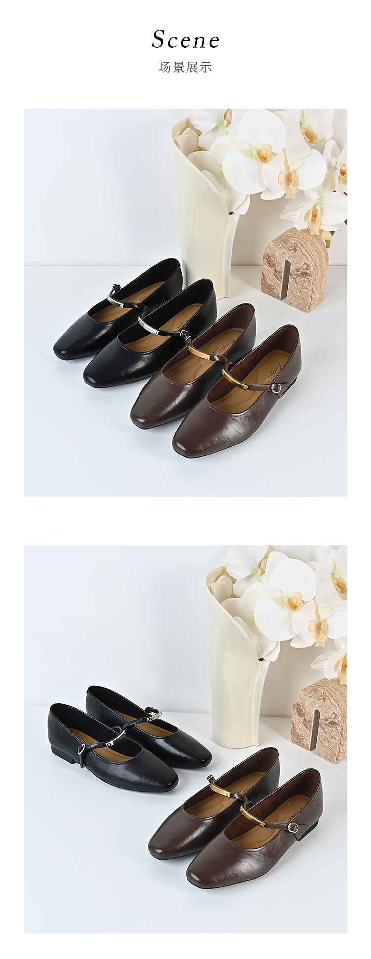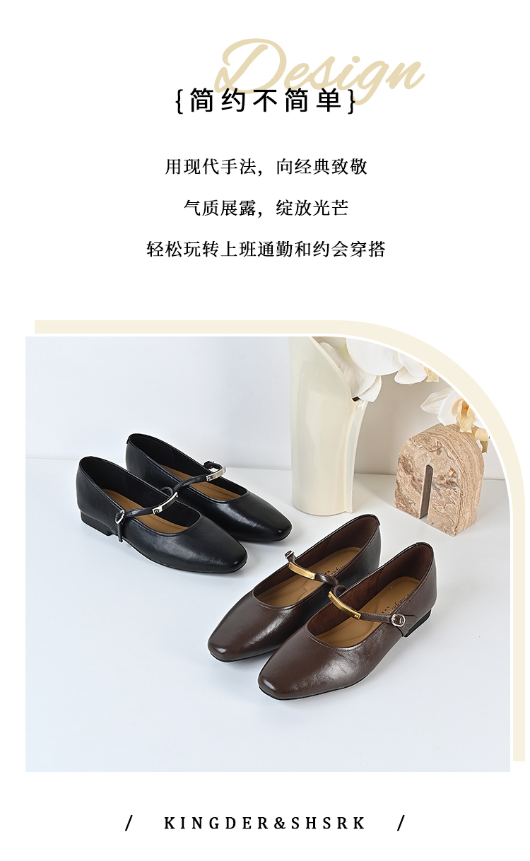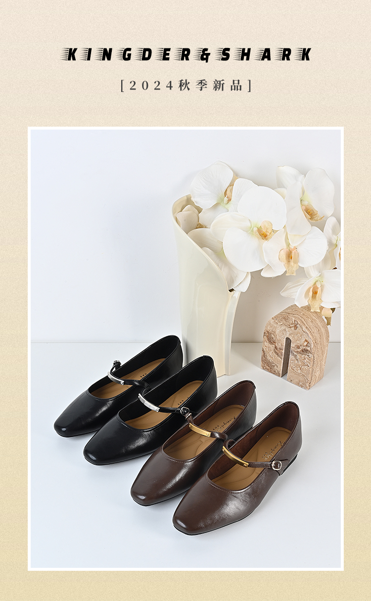 经典鲨2024年秋新款复古小方头平底舒适通勤简约浅口单鞋女KW89-D37151