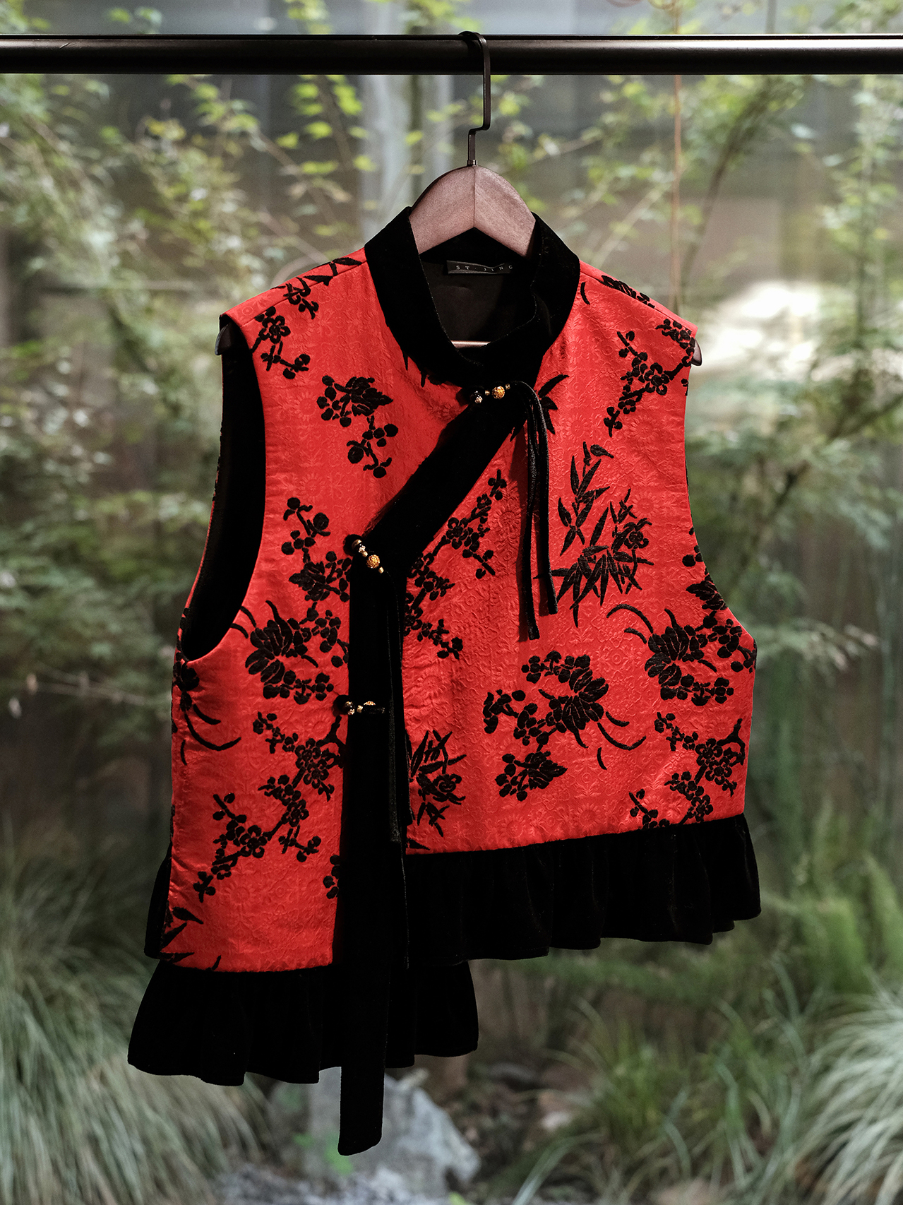 盛唐婧 | 赤运玄裳新中式提花绒拼丝绒不规则马甲