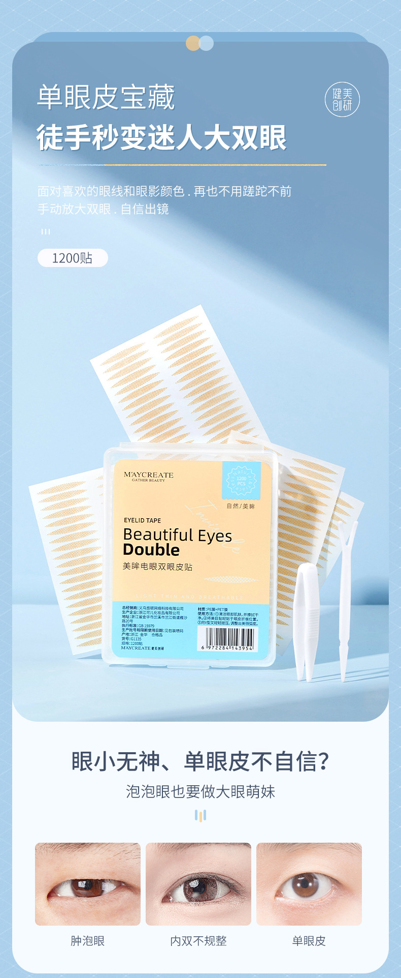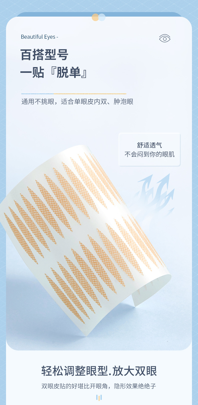 【大眼小心机!美眸电眼双眼皮贴】材质舒适透气 不闷眼肌,百搭型号 通用不挑眼!轻松调整眼型.放大双眼,耐水耐汗狂冲水不脱落!雾面哑光易上妆不反光,双眼皮贴女无痕隐形自然持久肿泡眼专用橄榄型Y