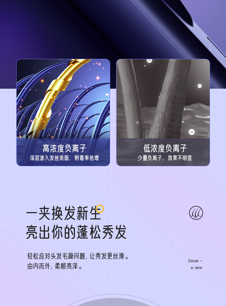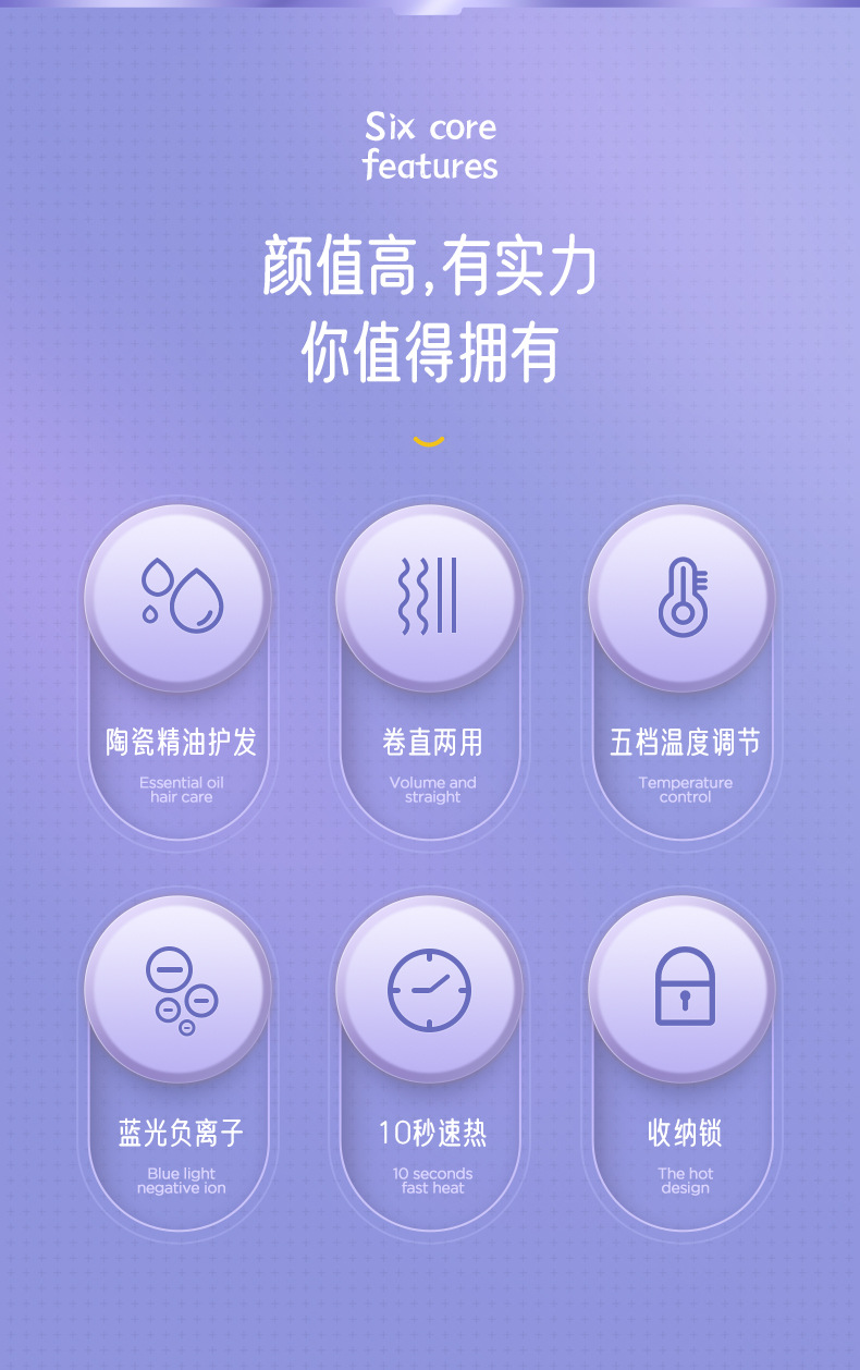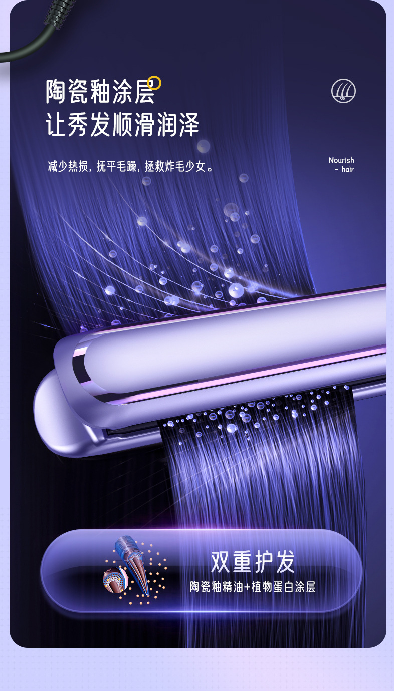 【5000万蓝光负离子护发!直板夹】蓝光负离子水润滋养发质 抚平毛糙,水性陶瓷精油涂层双重滋养,3D浮动面板松弛有度 不伤秀发,不伤发可调温拉直电夹板Y