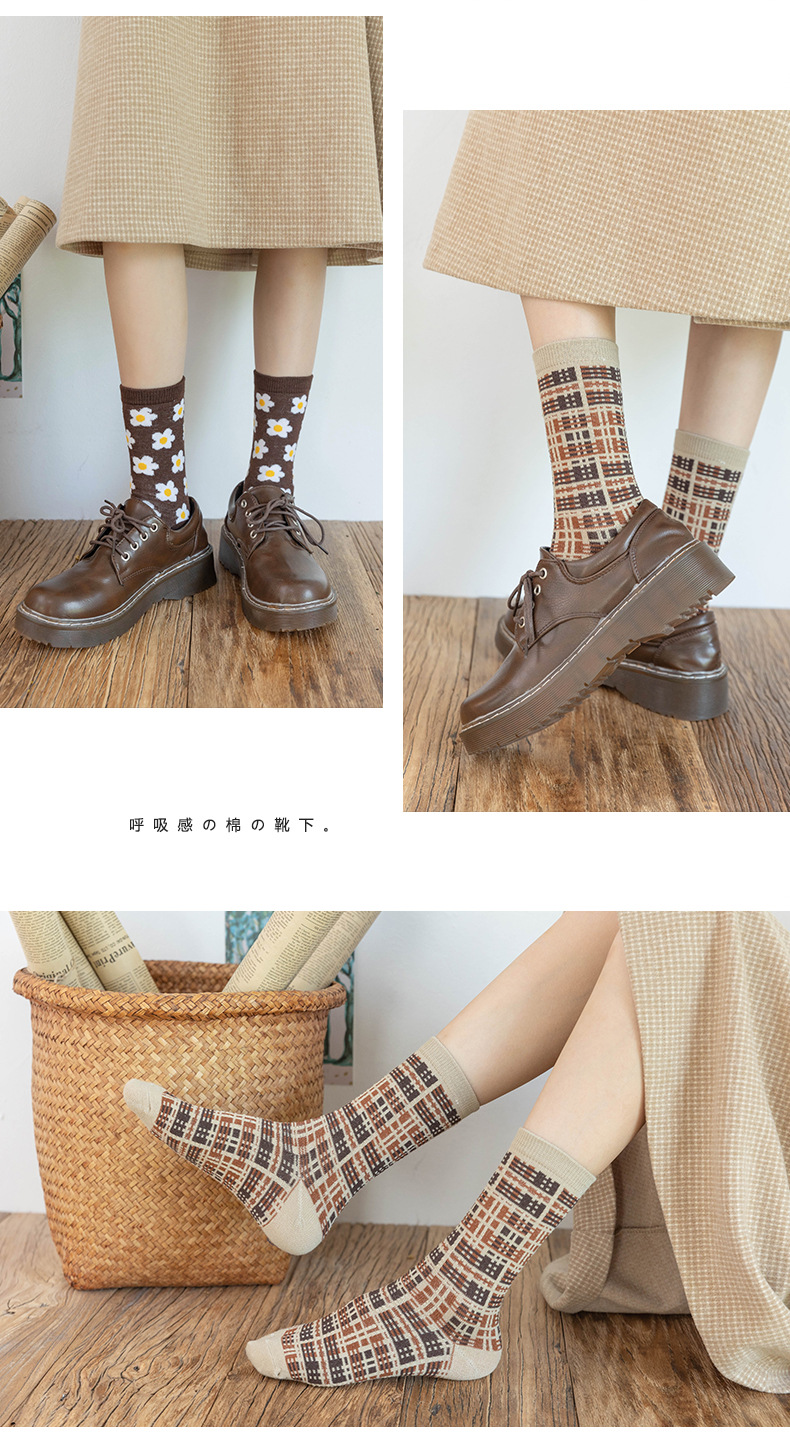 服饰鞋包-咖色系ins菱格潮袜厚款英伦风