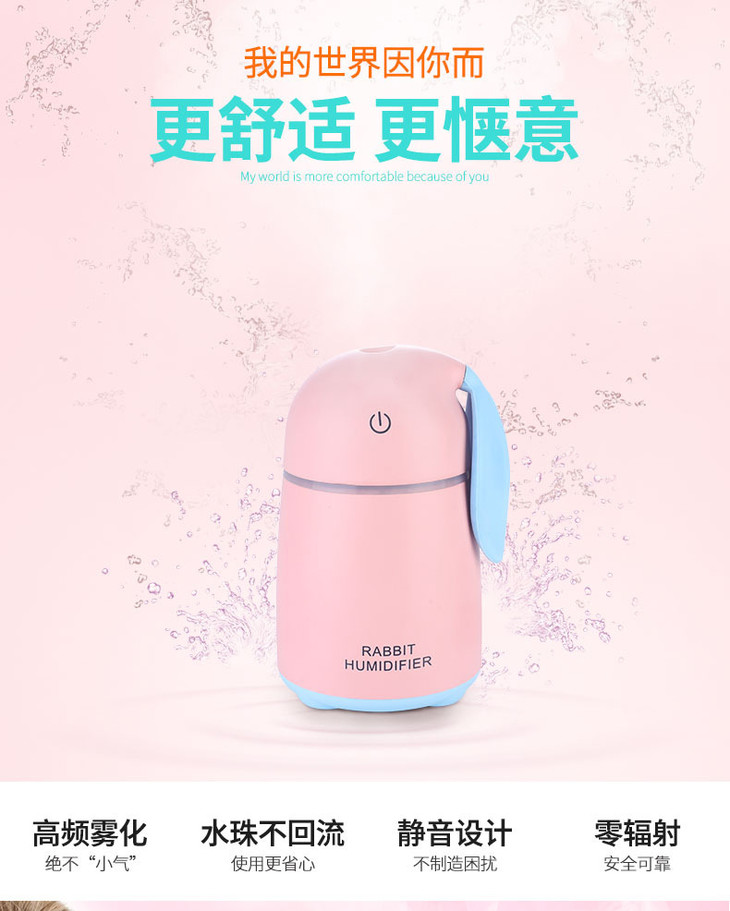 【加湿器】 萌兔加湿器 迷你静音家用usb加湿器