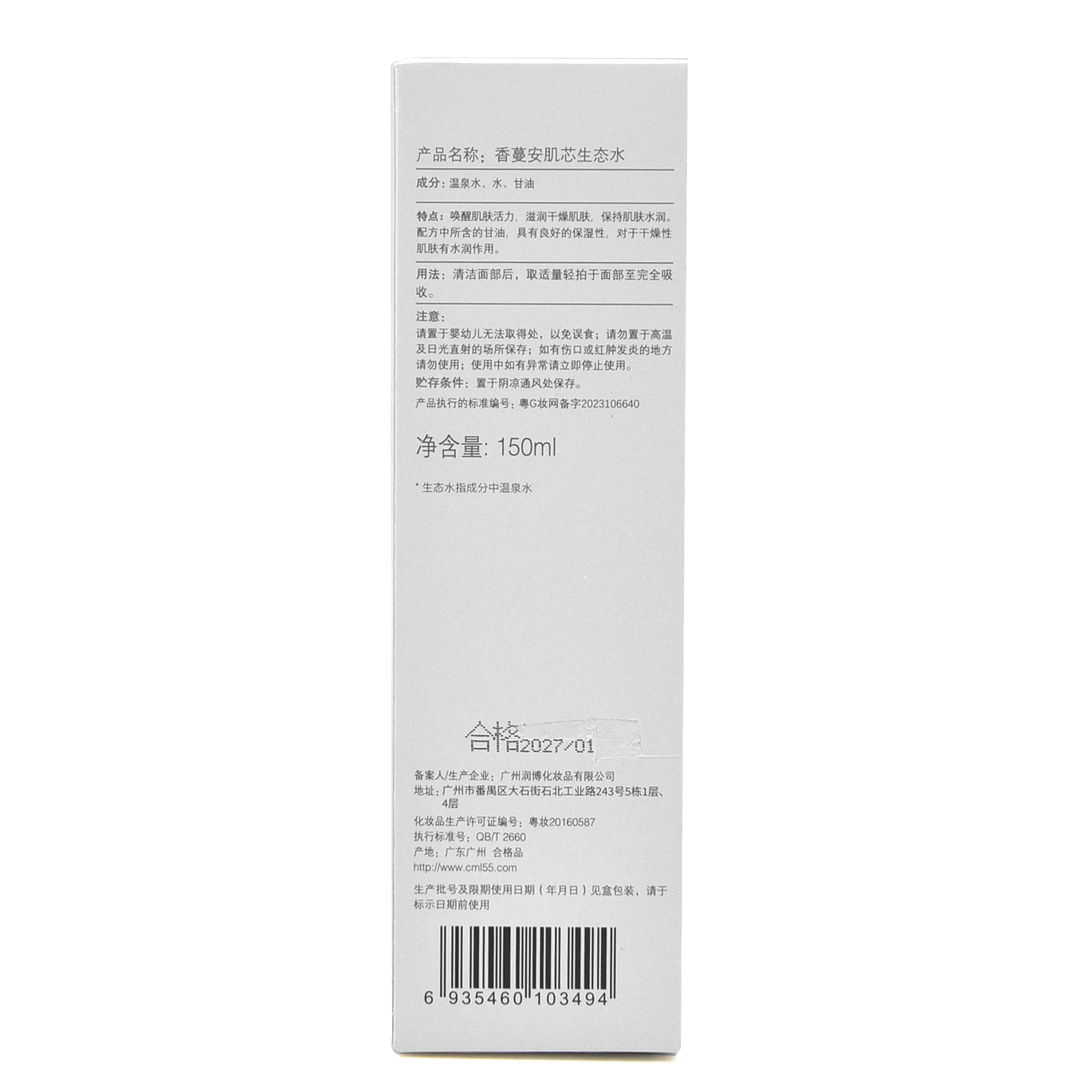 产品特点:唤醒肌肤活力,滋润干燥肌肤,保持肌肤水润。配方中所含的甘油,具有良好的保湿性,对于干燥性肌肤有水润作用。