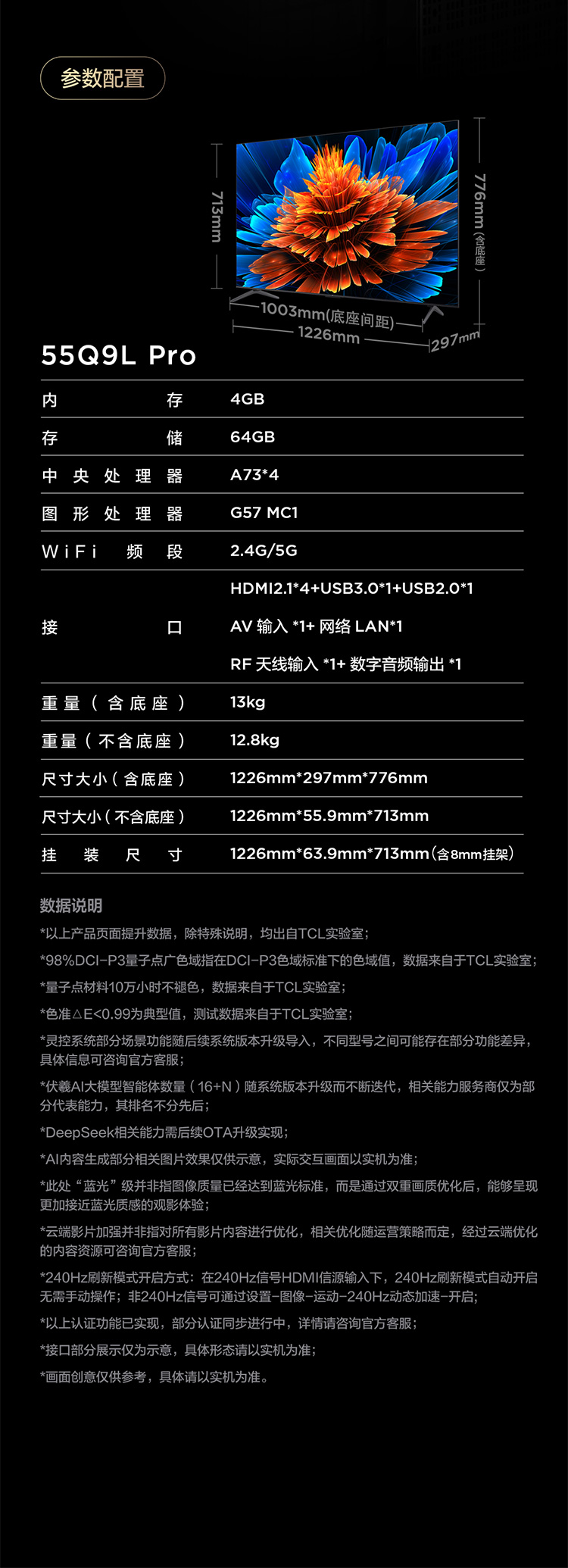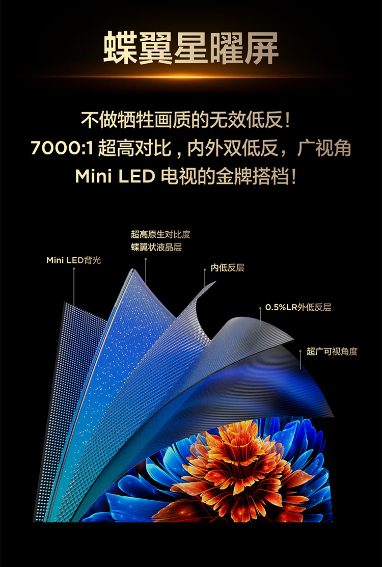 TCL电视 55Q9L Pro 55英寸 QD-Mini LED 蝶翼星曜屏 万象分区 绚彩XDR 3000nits 超薄电视