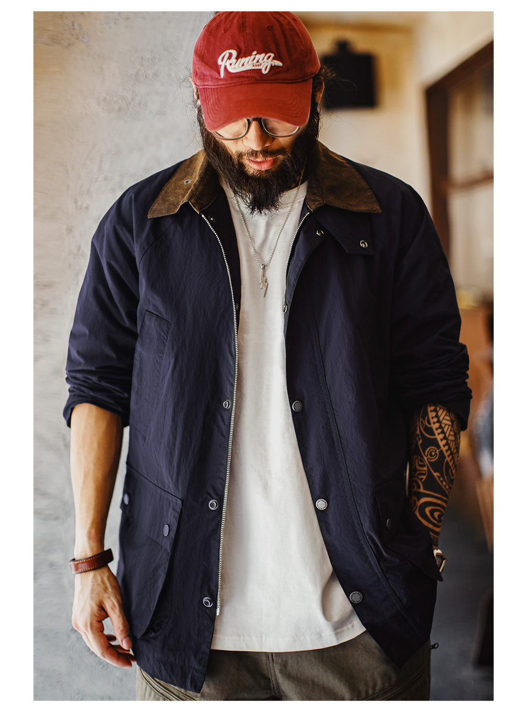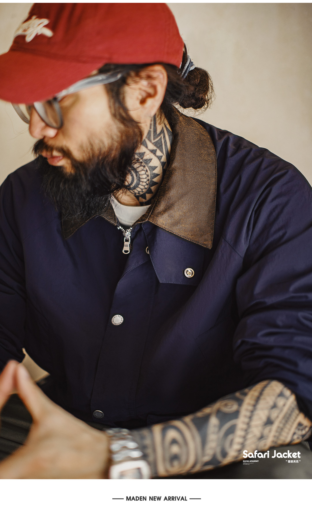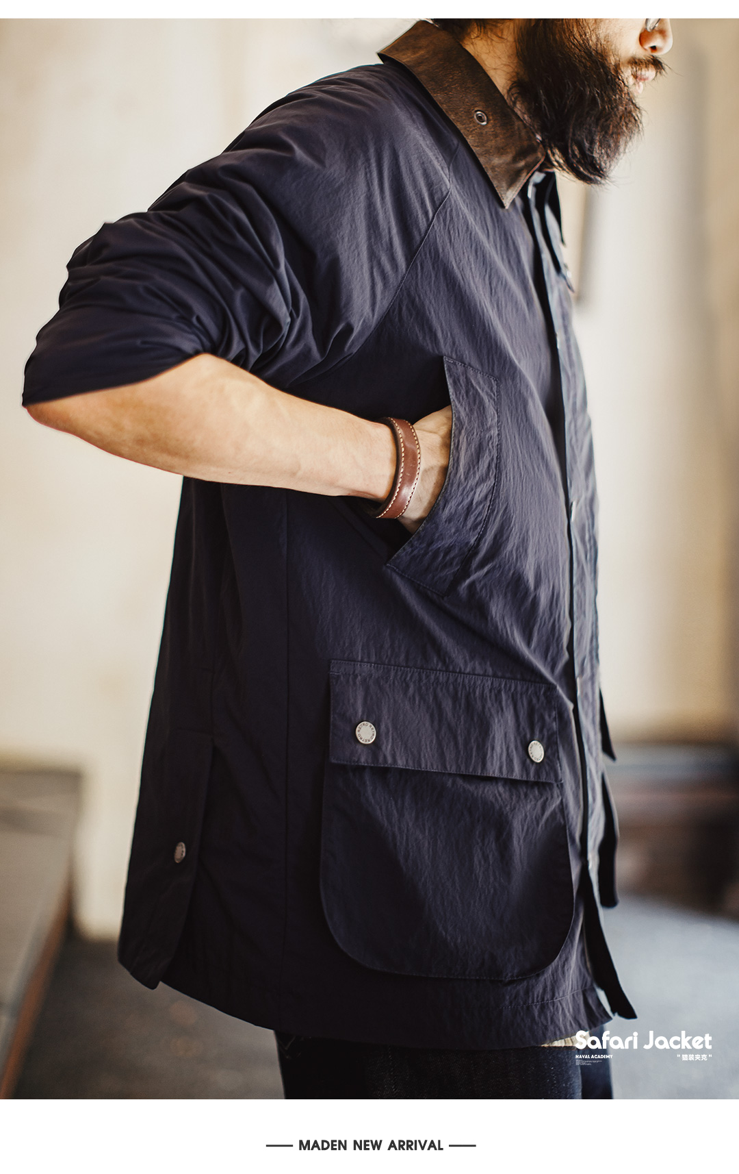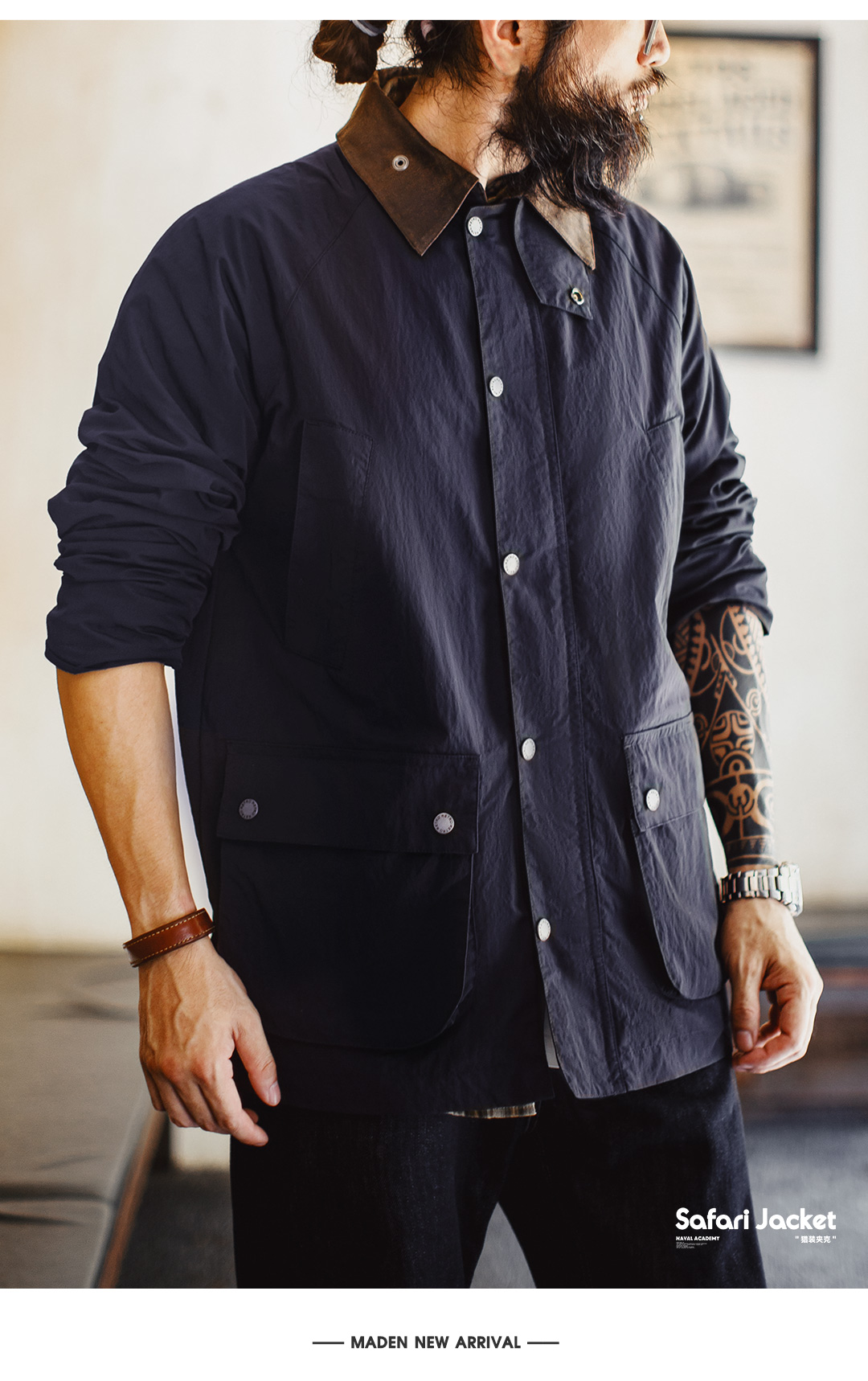 马登工装美式复古Safari游猎装夹克防水蓝色vintage风衣外套男秋