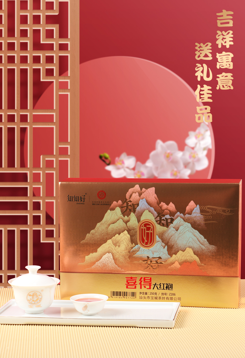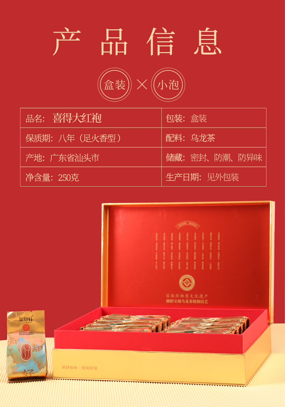 宝城知知好喜得大红袍茶叶250克小泡礼盒装高档浓香型岩茶Z206